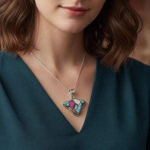 Beautiful Necklace. Turquoise & Sterling Silver Necklace. It measures 20 inches long with hang while the chain measures 18 inches long. Signed stamped sterling silver.