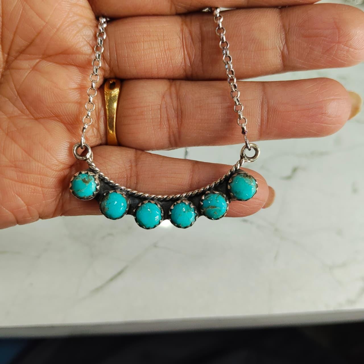 Handmade Turquoise Sterling Silver Necklace: Southwest Style jewllery , 18" gift for her, back side close jewllery