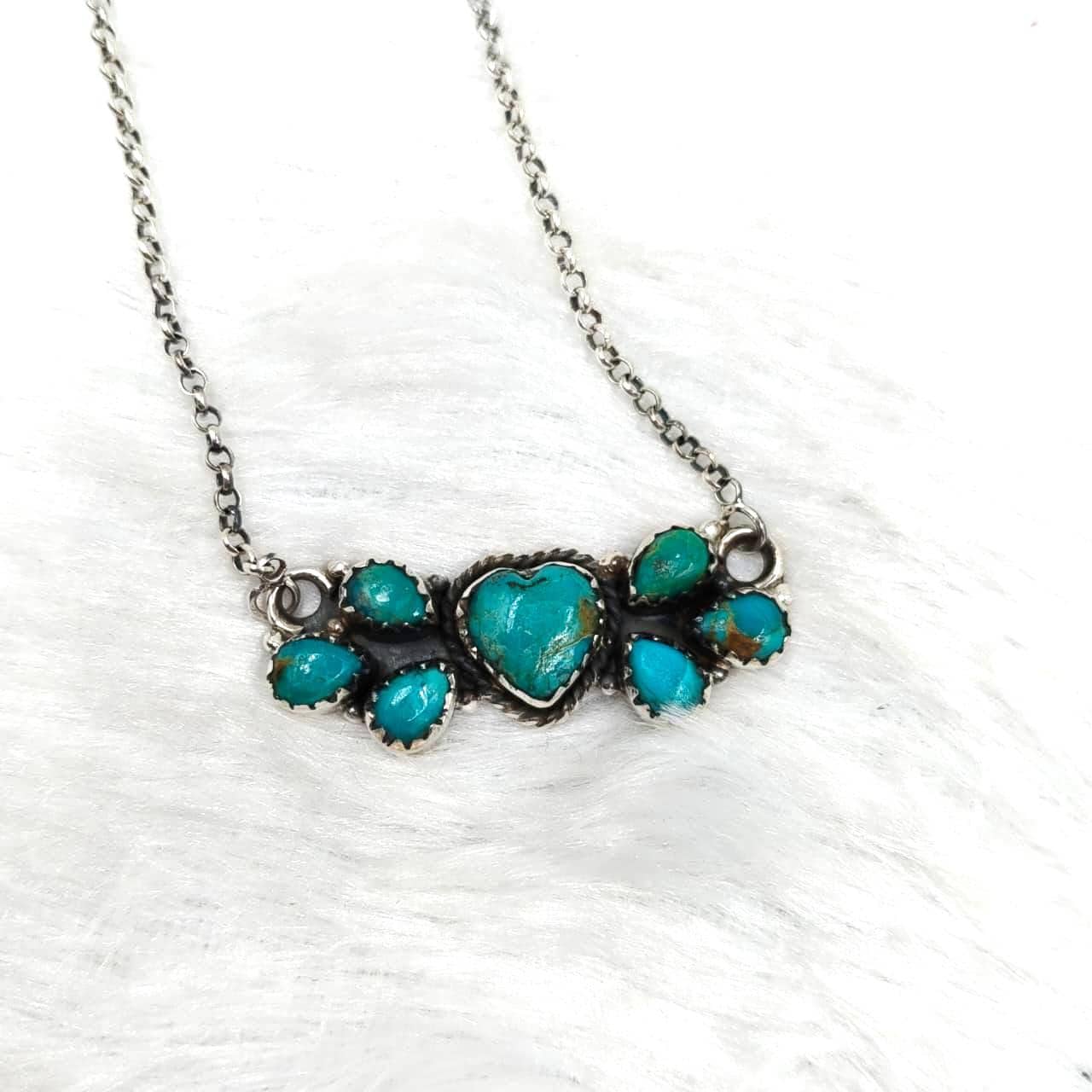 BlueTurquoise southwest Necklace (18" + 2" Extender), sterling silver necklace , gift for her