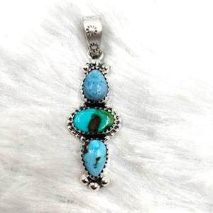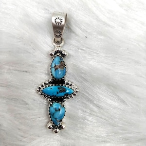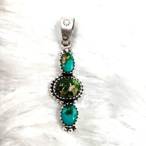 Beautiful Necklace. Turquoise & Sterling Silver Necklace. It measures 20 inches long with hang while the chain measures 18 inches long. Signed stamped sterling silver.
