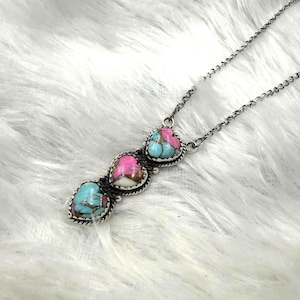 Cotton Candy Turquoise Lightning Bolt Necklace, Sterling Silver Southwest Jewelry