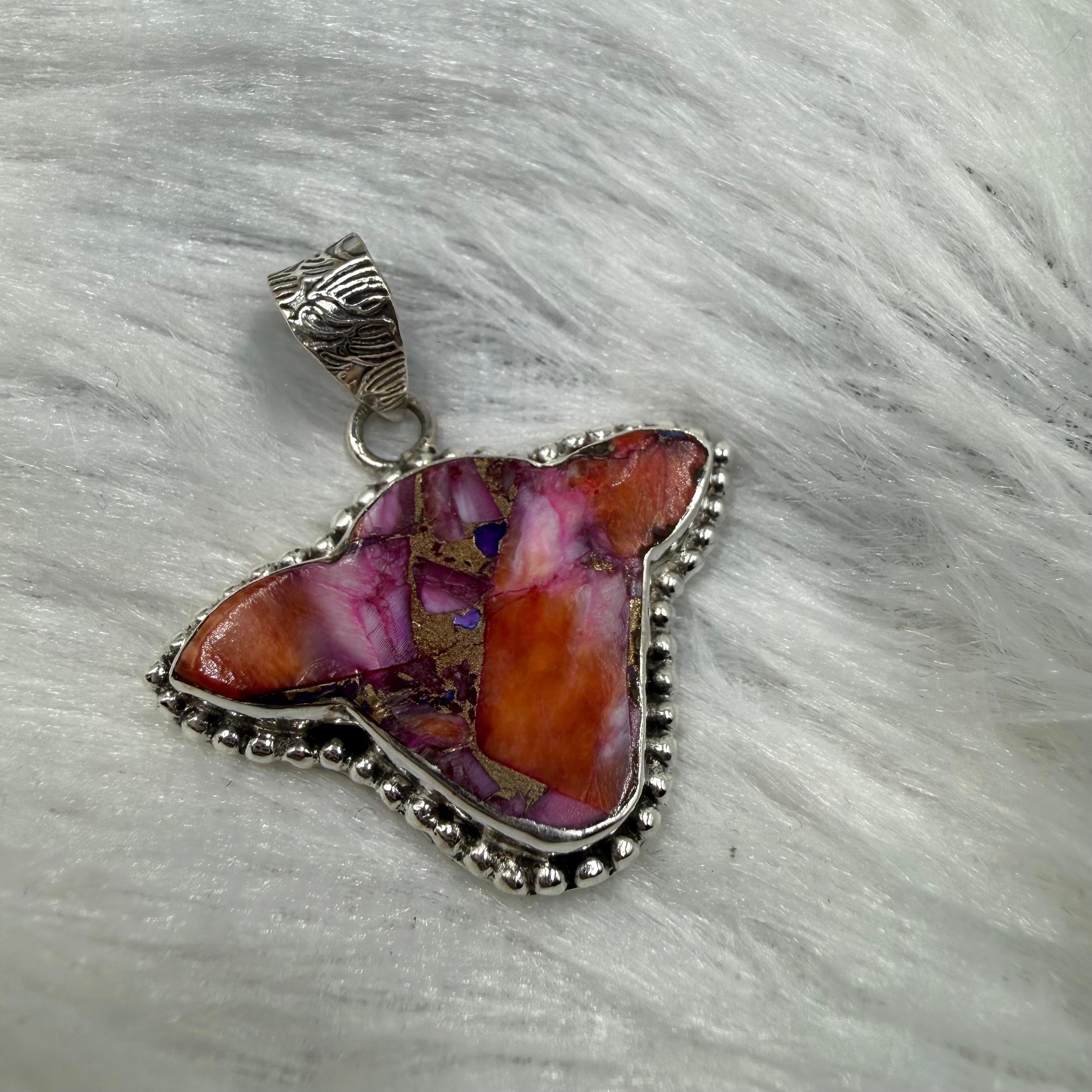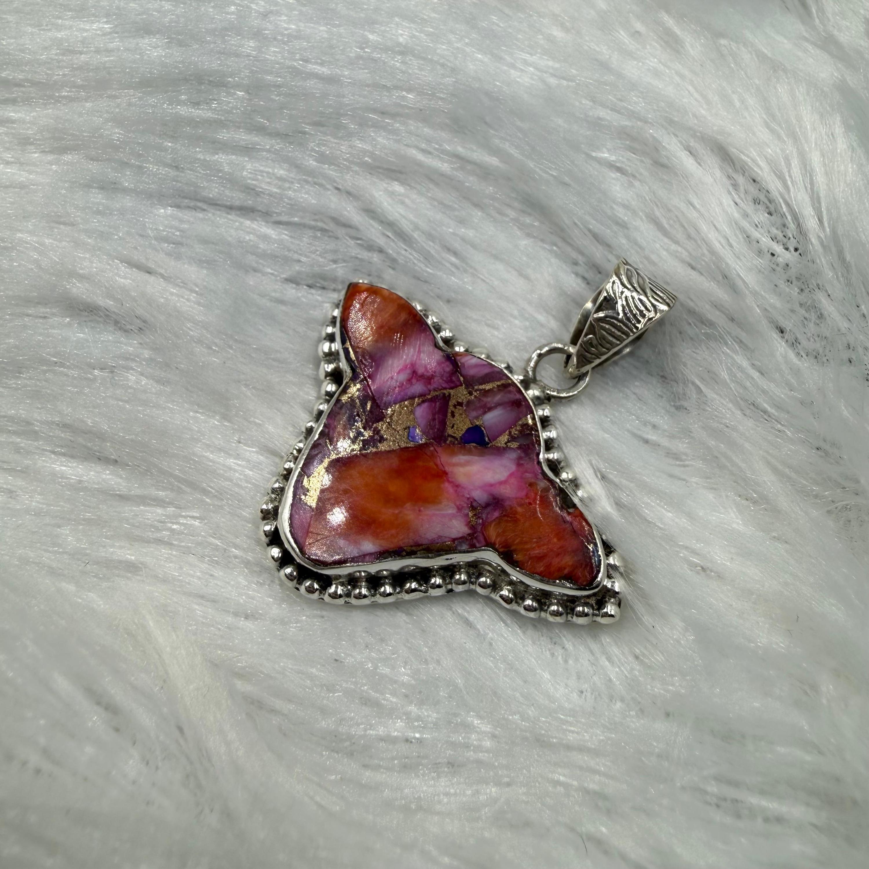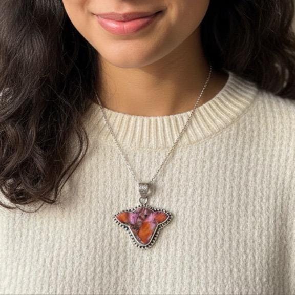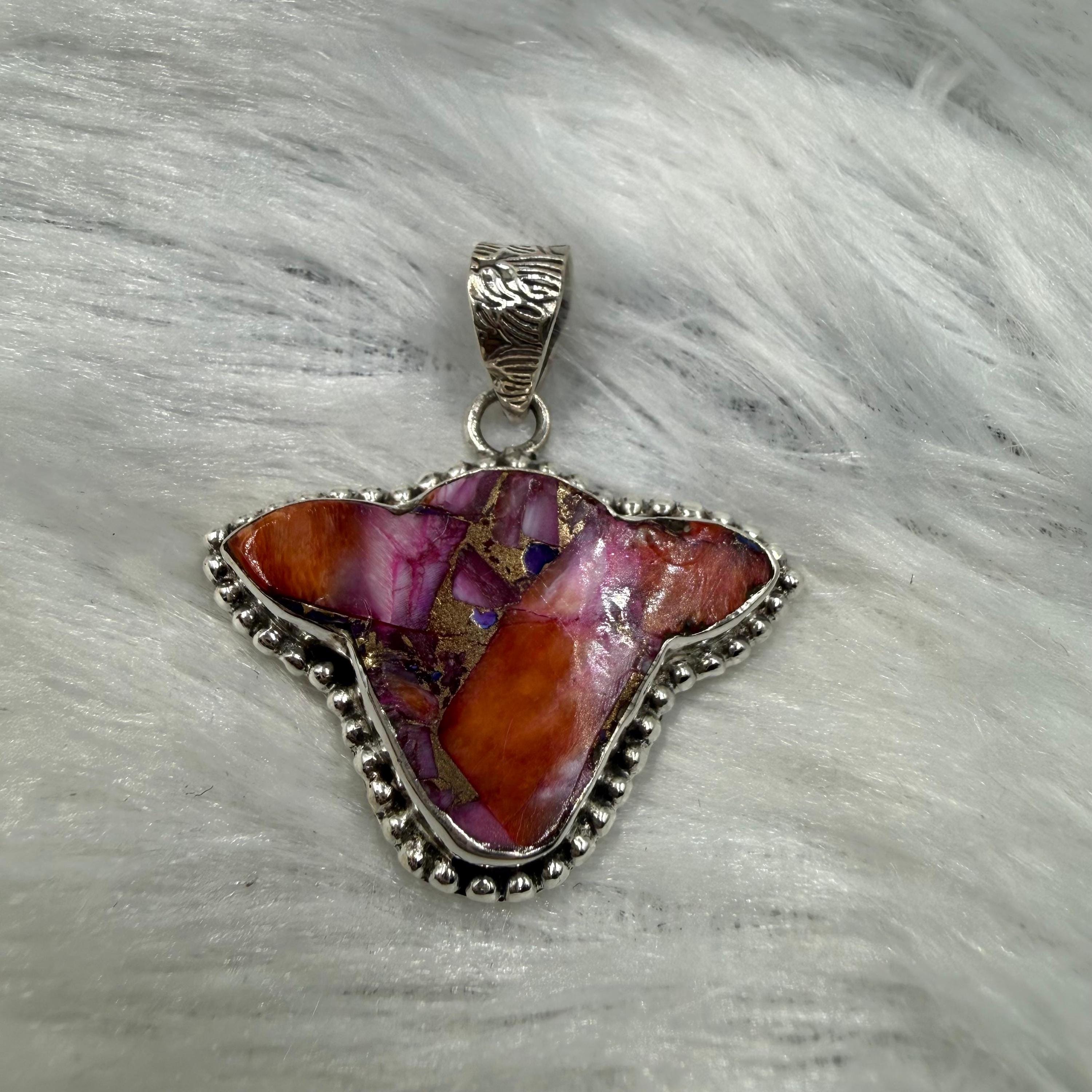Cow head Pink dhalia turquoise pendant, cow girl pendant,Southwest Handmade Sterling Silver cow girl pendant