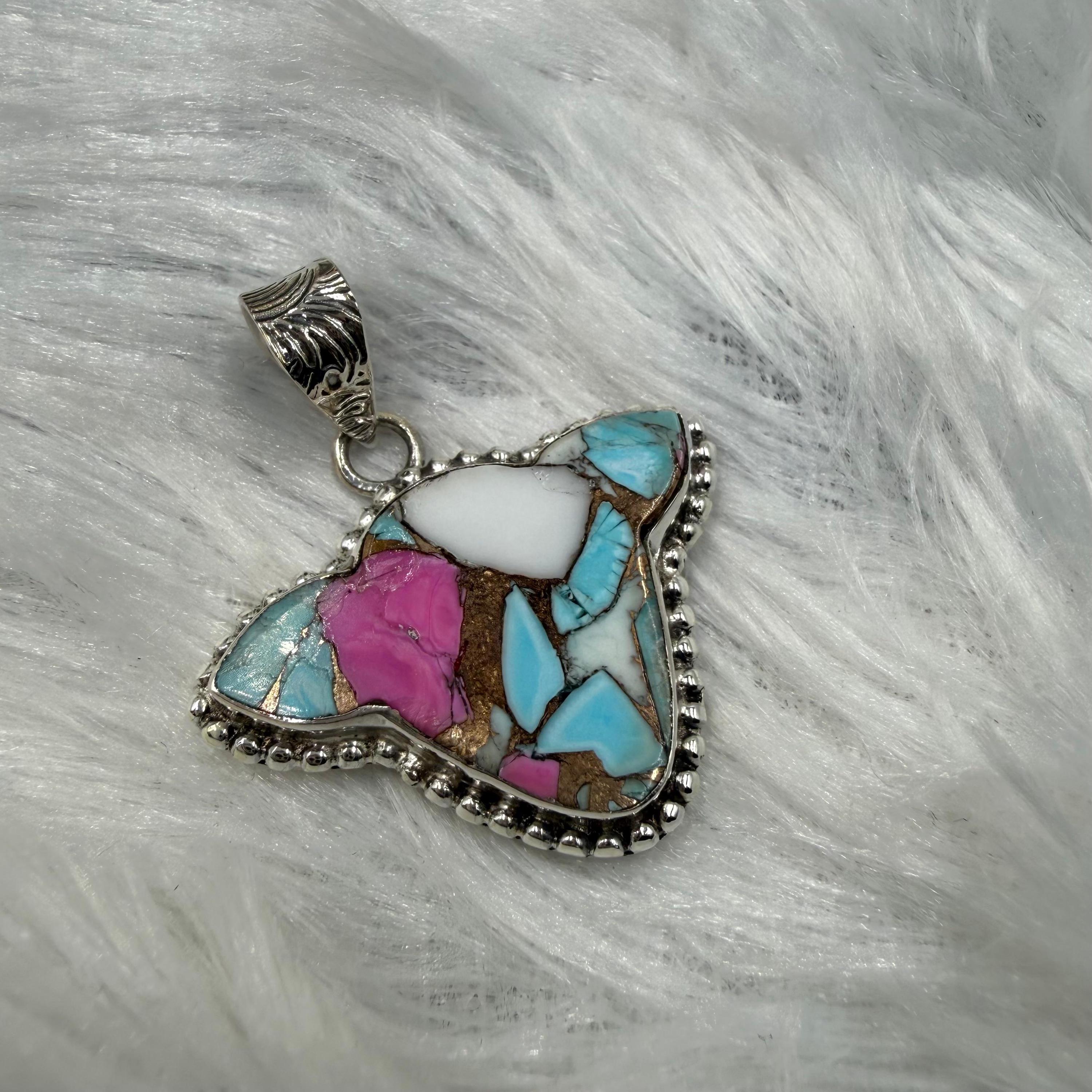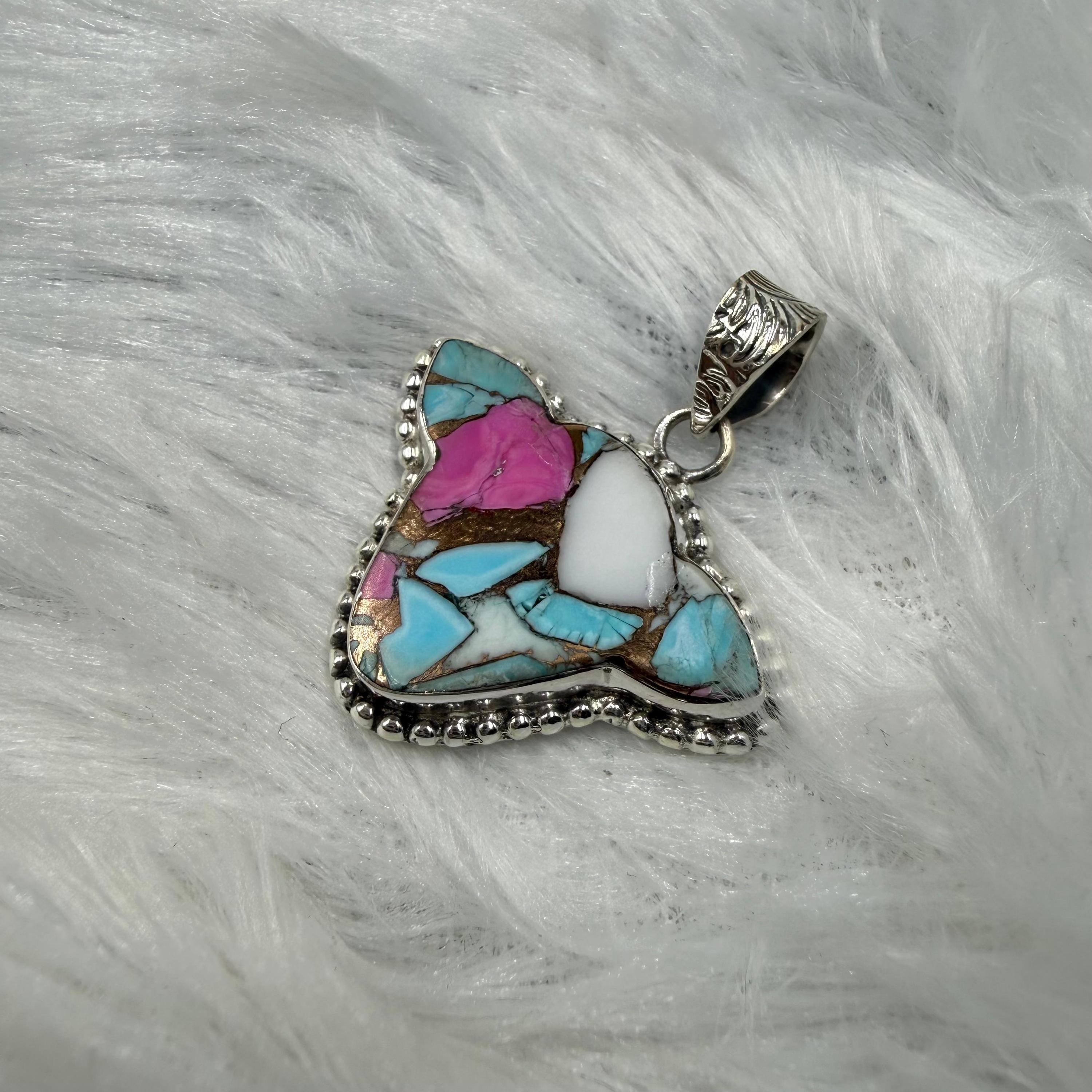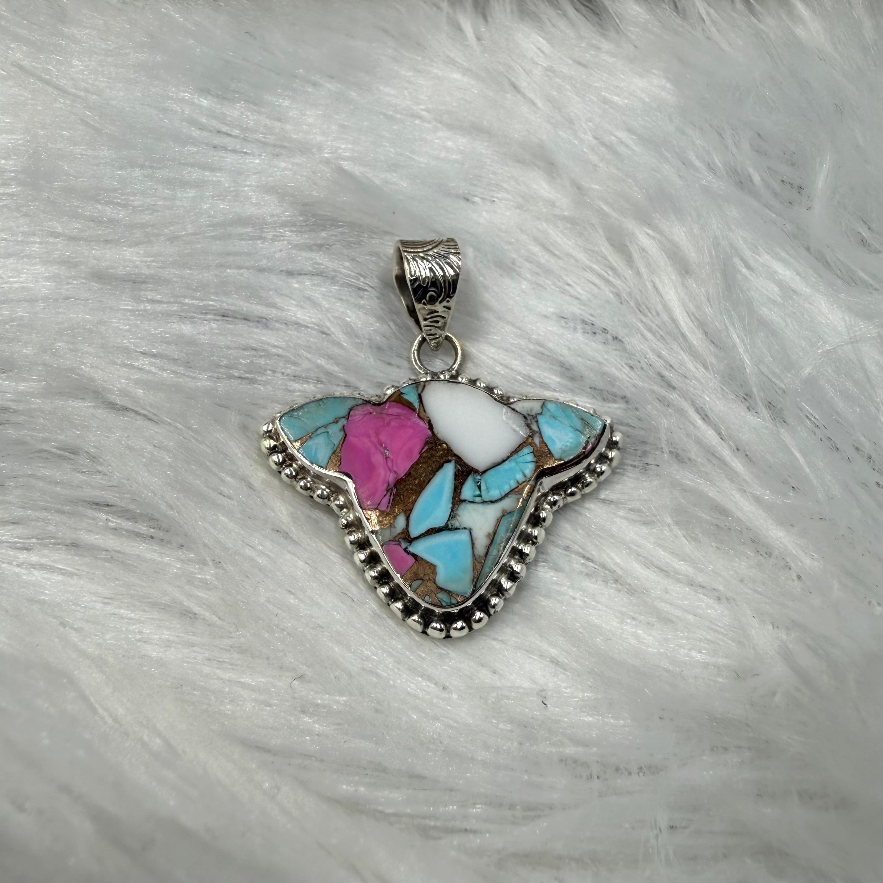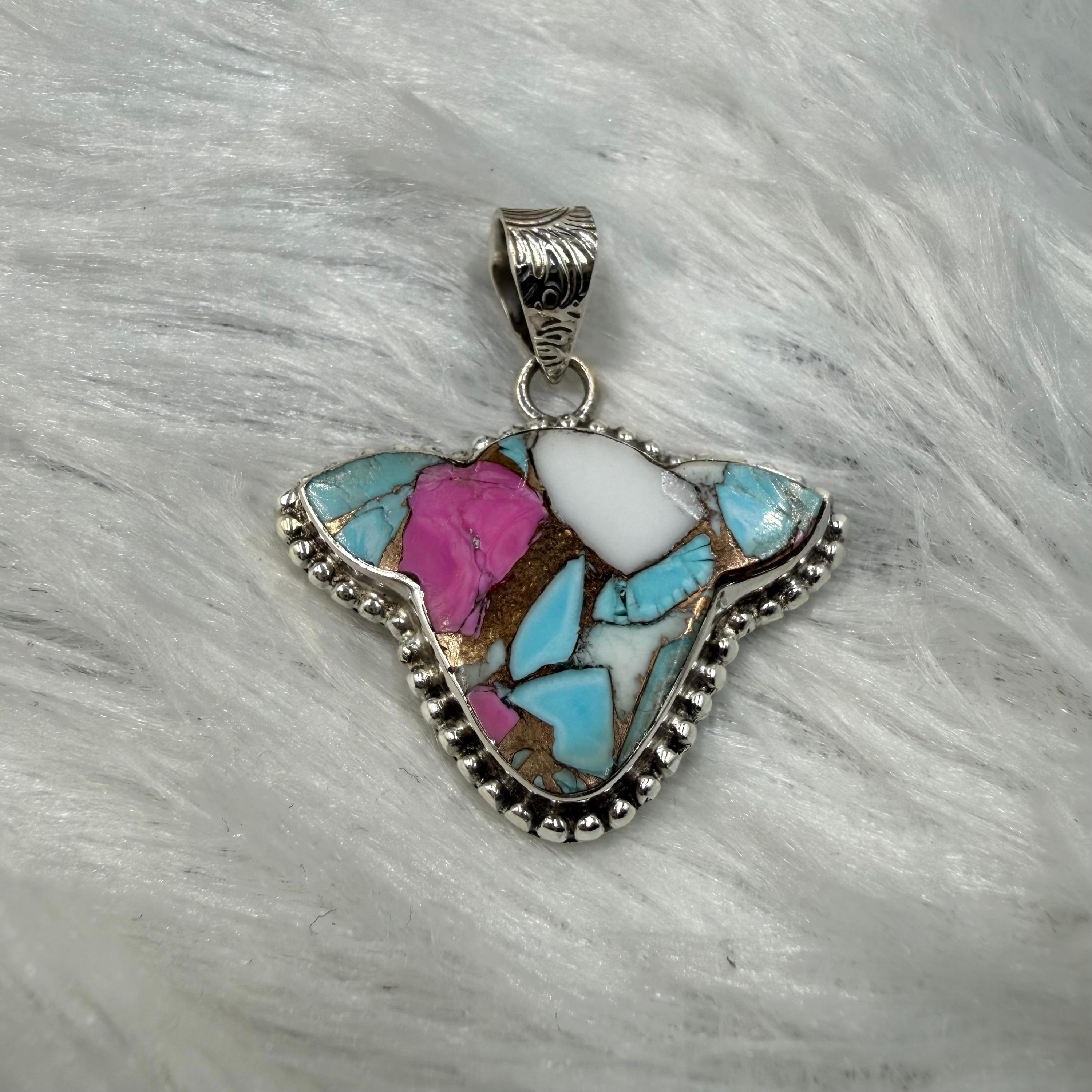 Cow head Cotton Candy turquoise pendant, cow girl pendant,Southwest Handmade Sterling Silver cow girl pendant