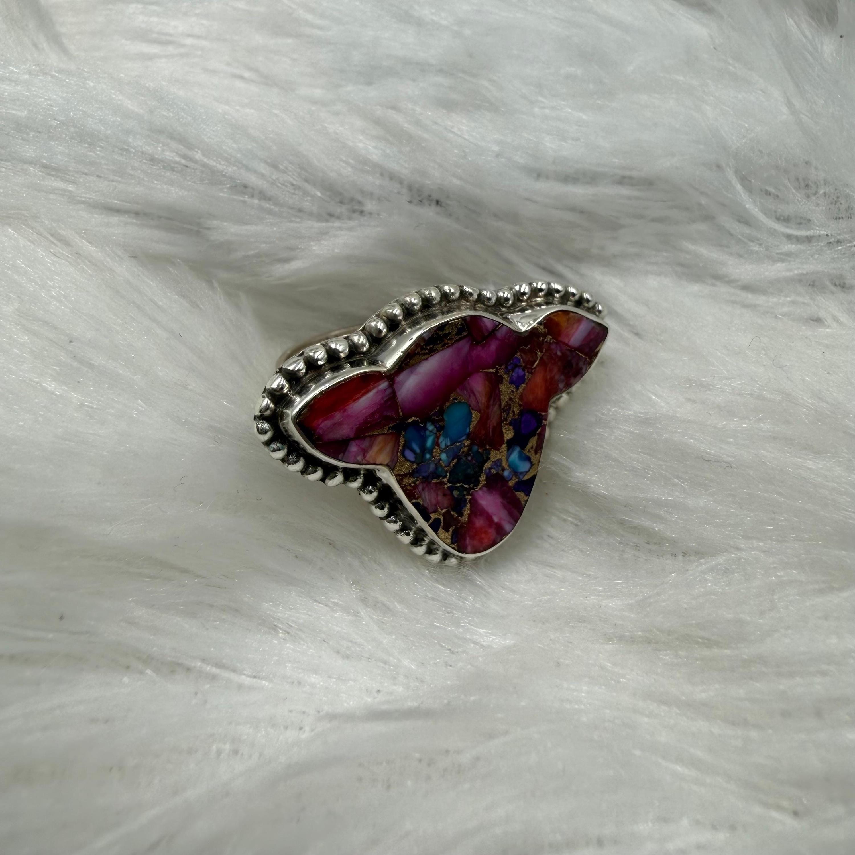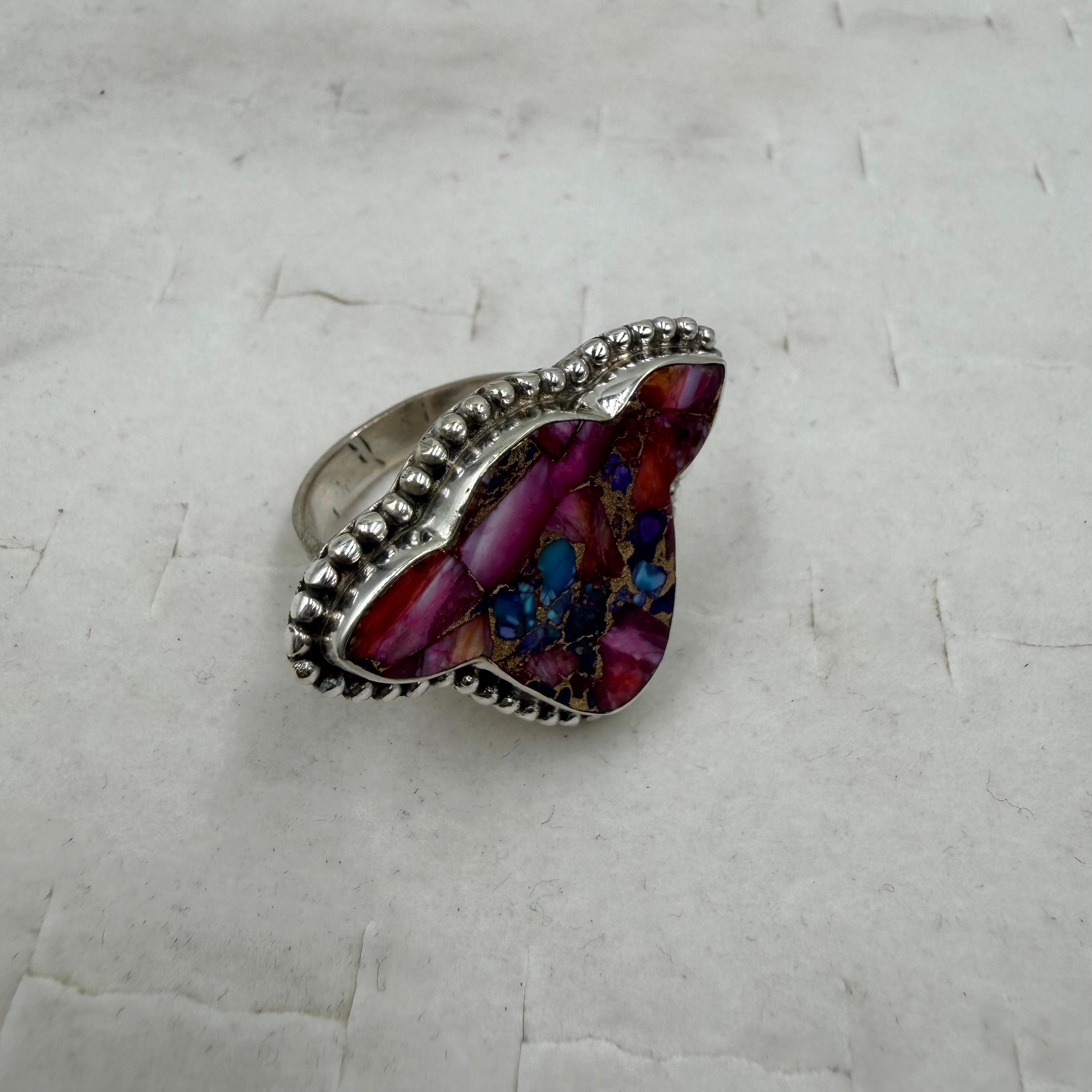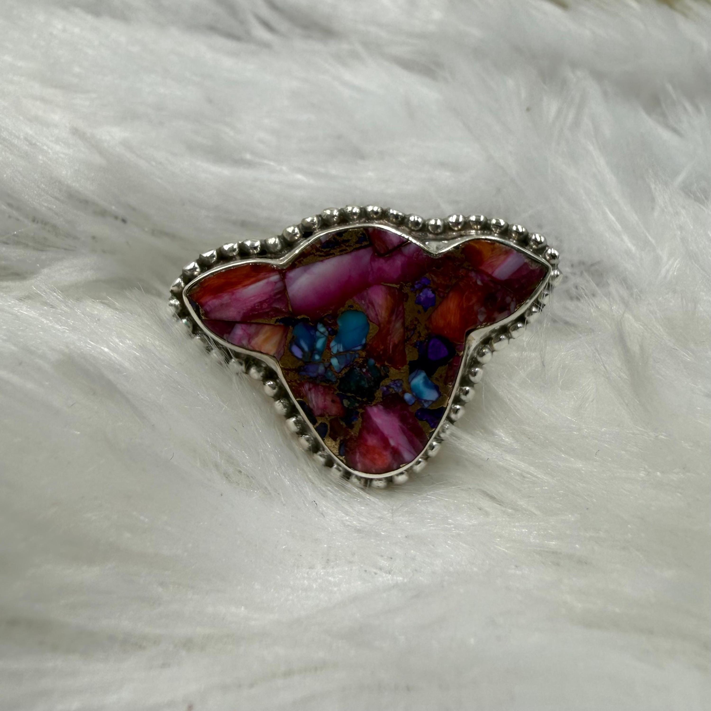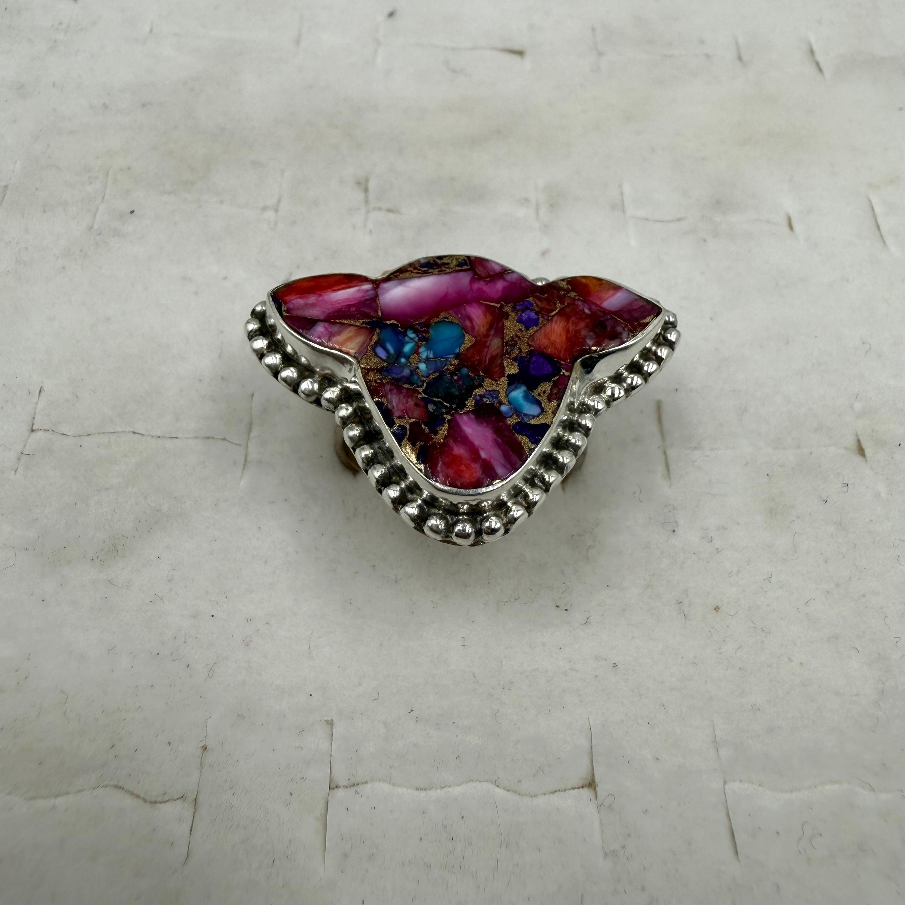 Cow head Pink dhalia turquoise Ring, cow girl ring, Southwest Handmade,turquoise ring, 92.5 Sterling Silver Ring,Adjuctable ring