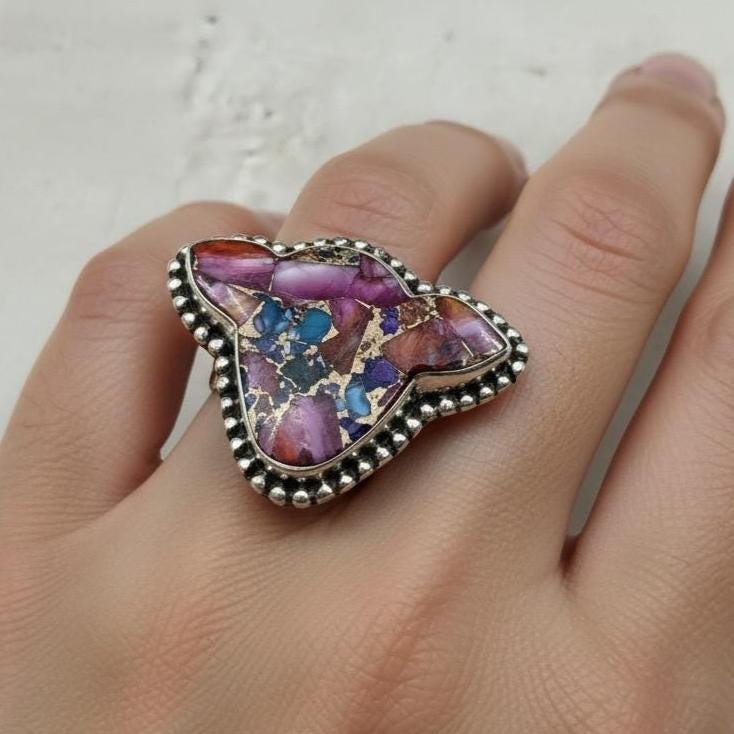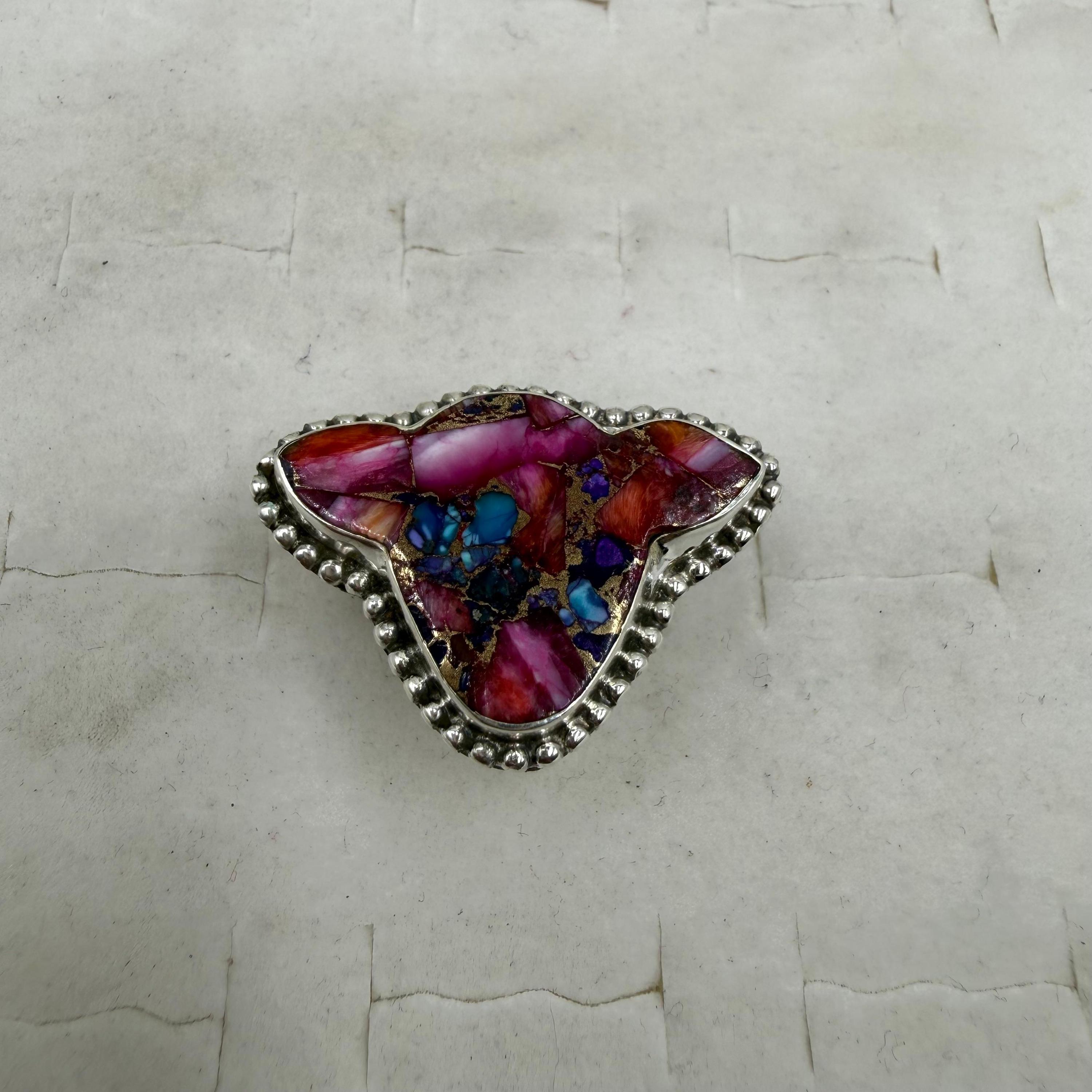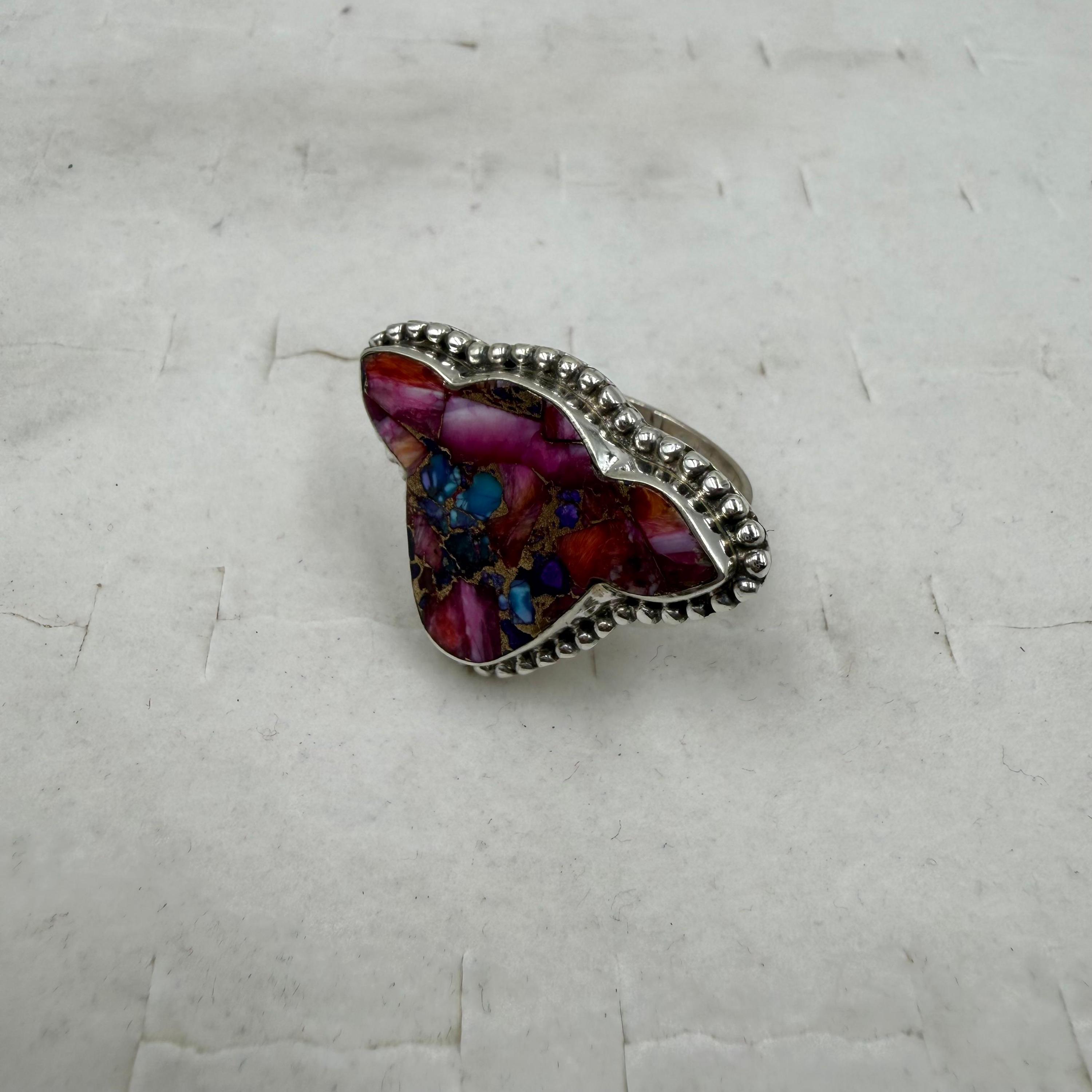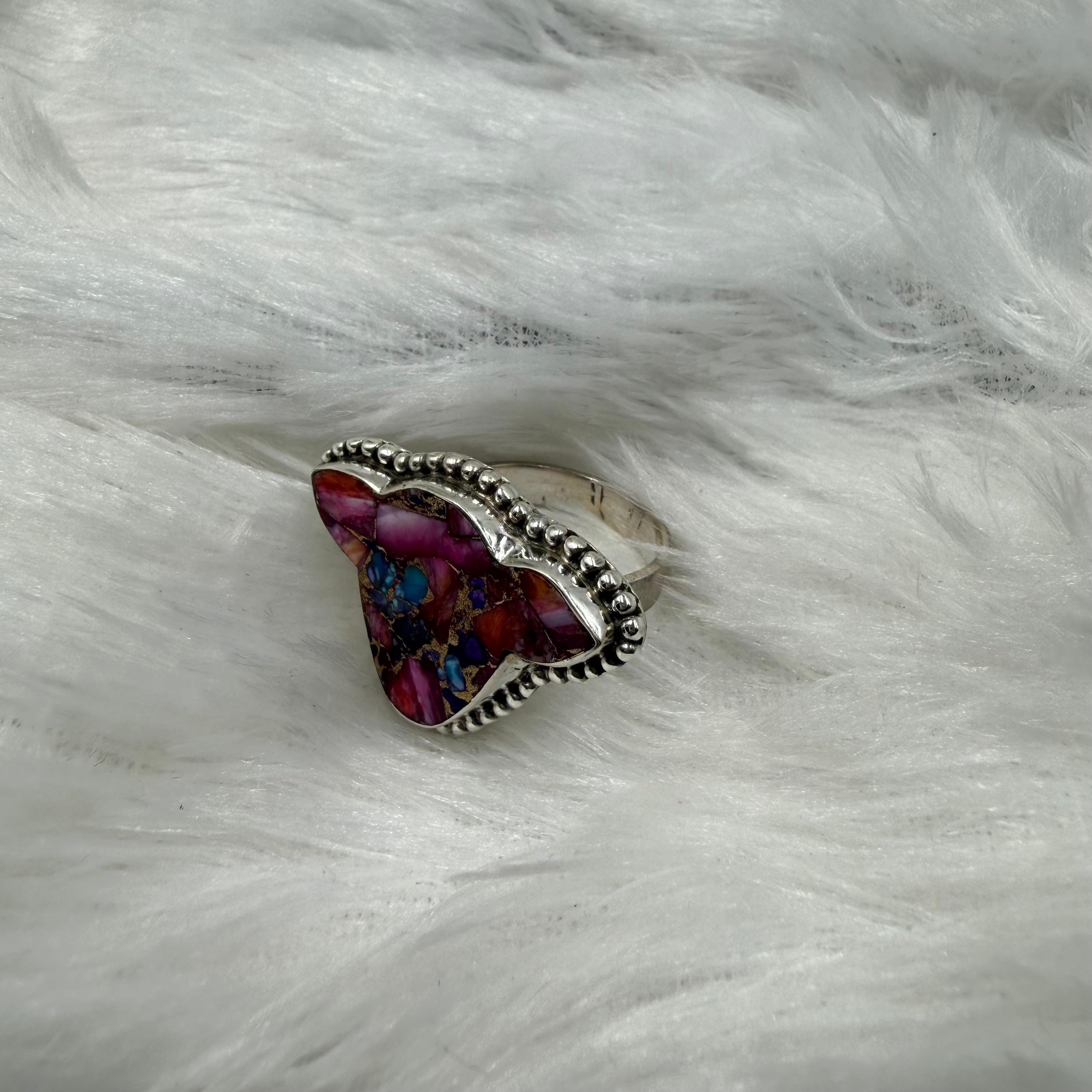 Cow head Pink dhalia turquoise Ring, cow girl ring, Southwest Handmade,turquoise ring, 92.5 Sterling Silver Ring,Adjuctable ring