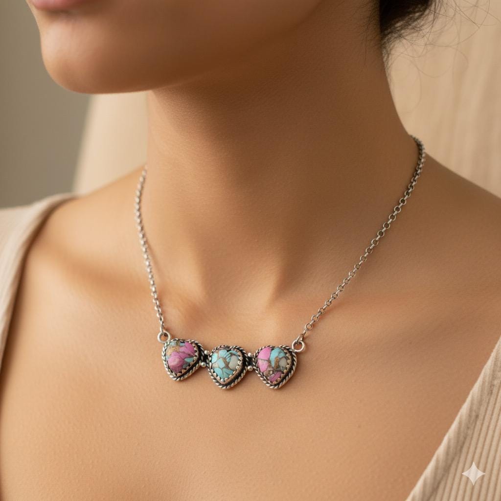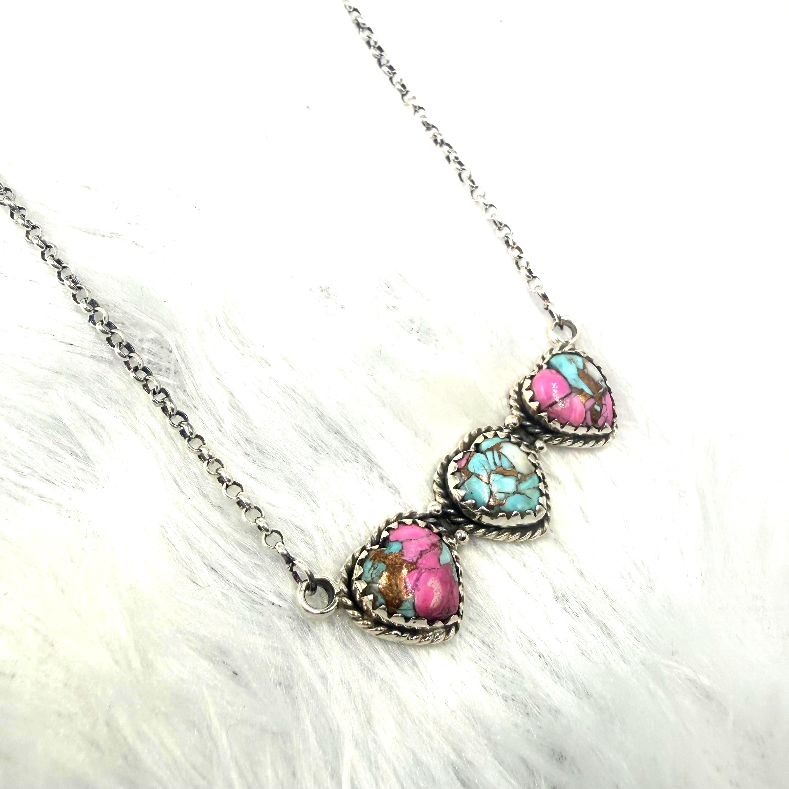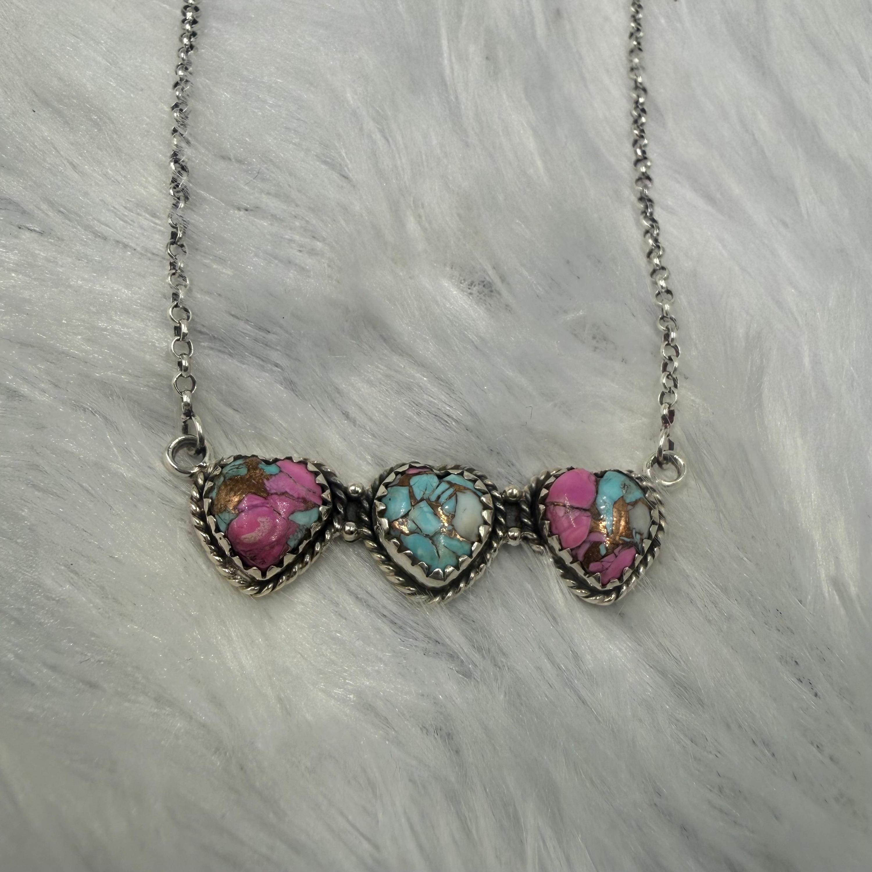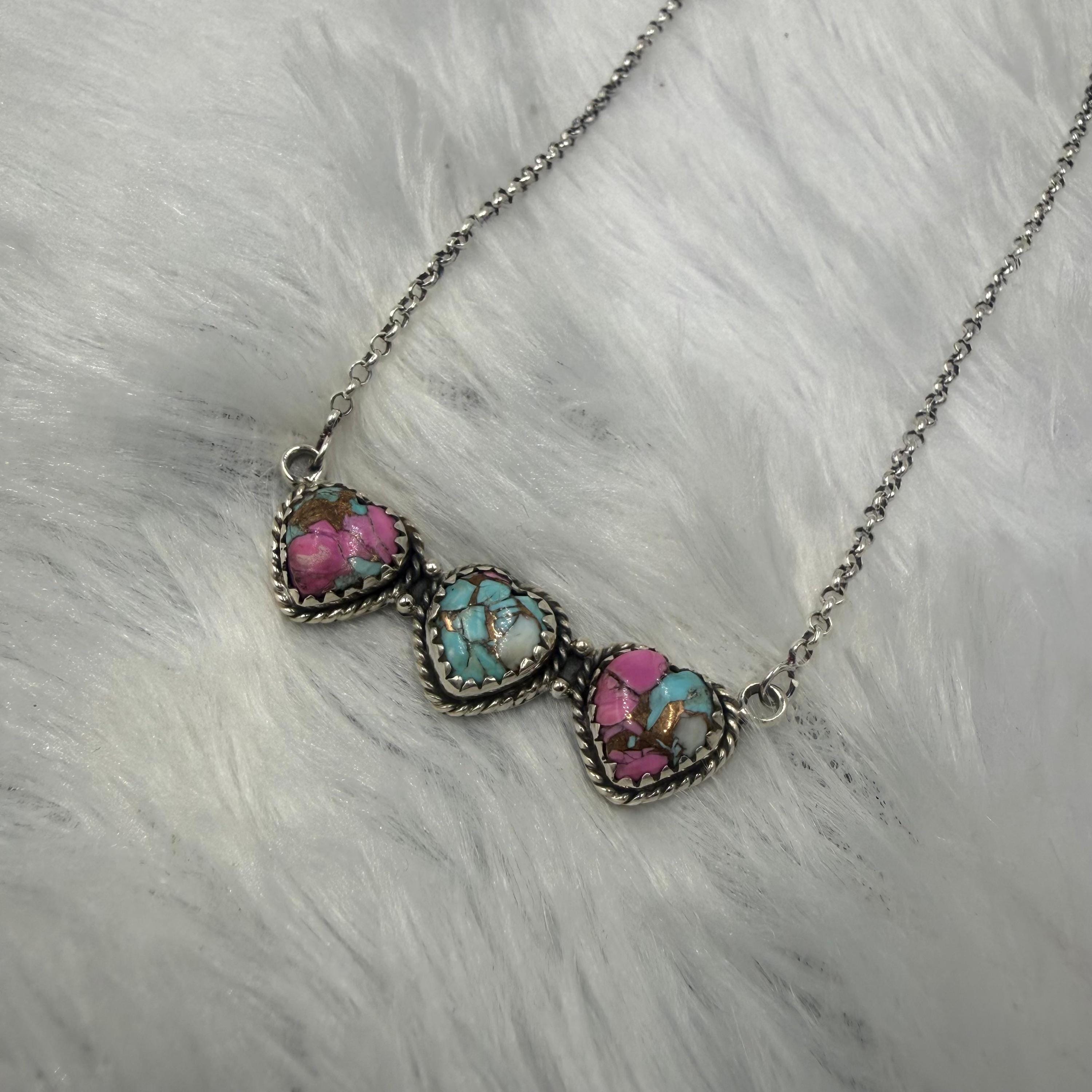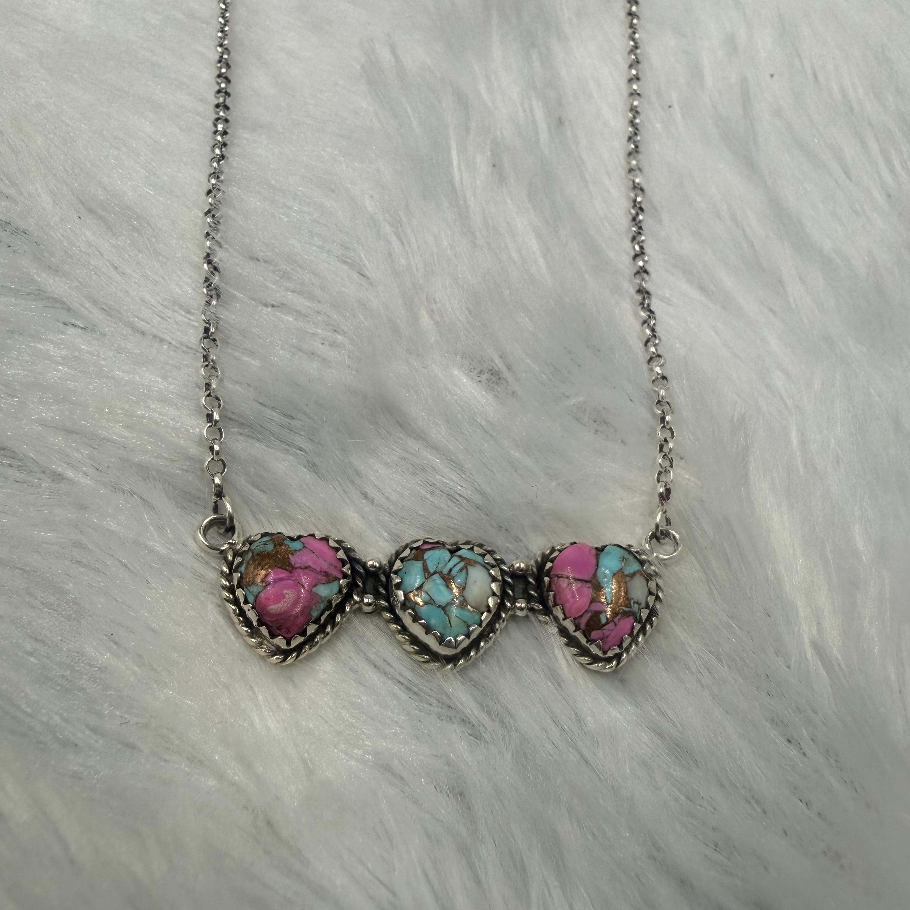 Cotton candy stone heart Necklace: Southwest Sterling Silver, 18" + 2" Extender