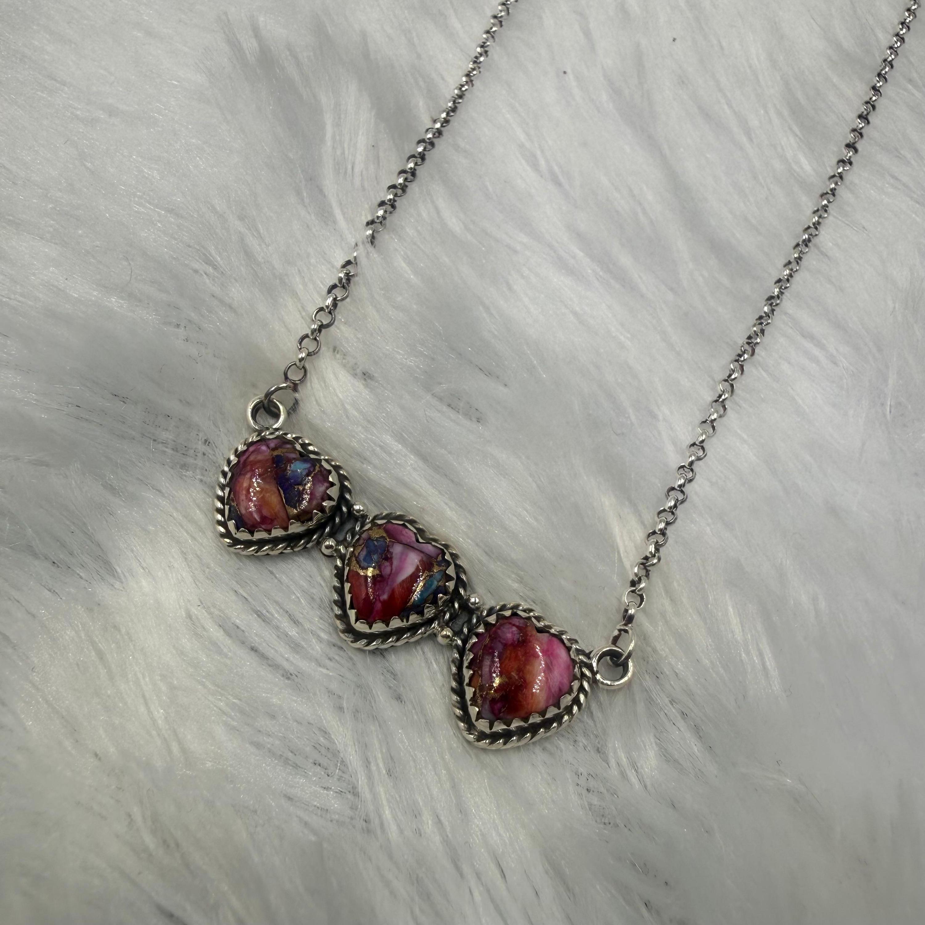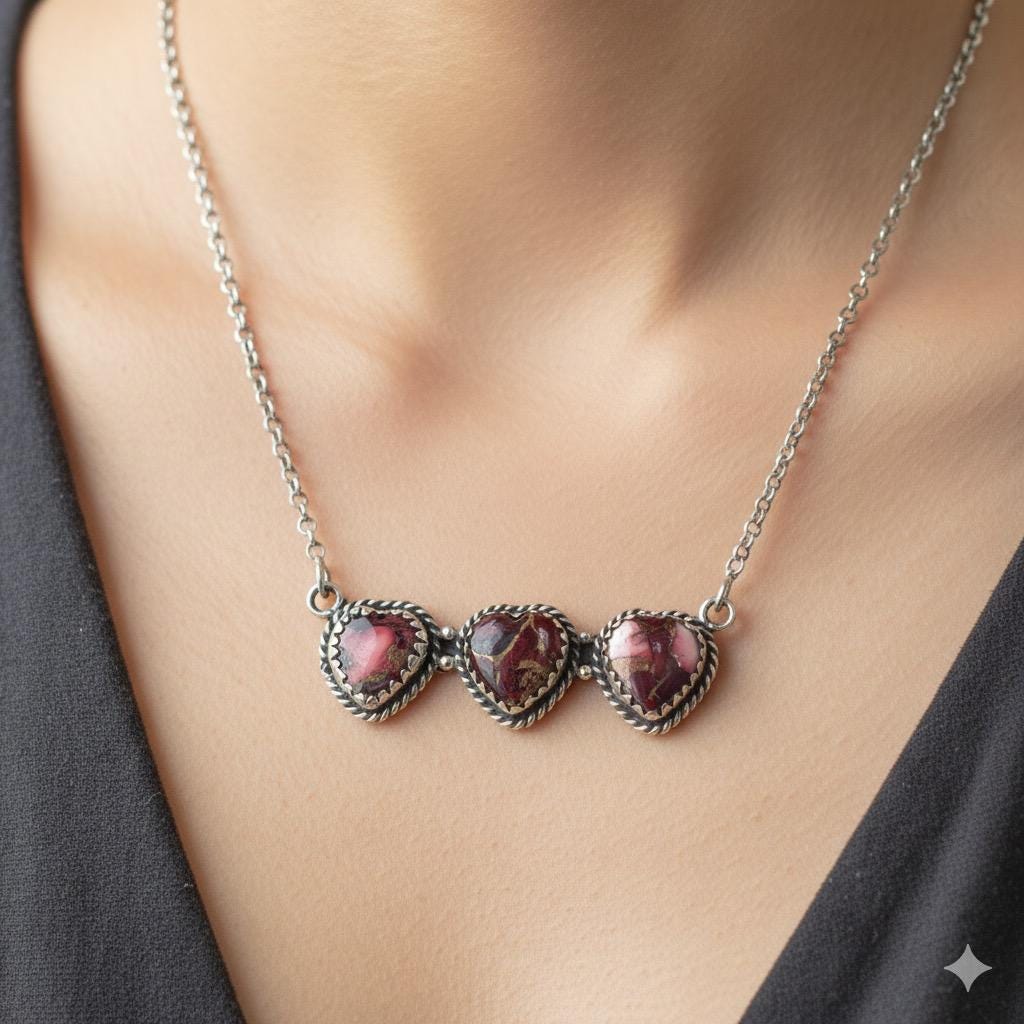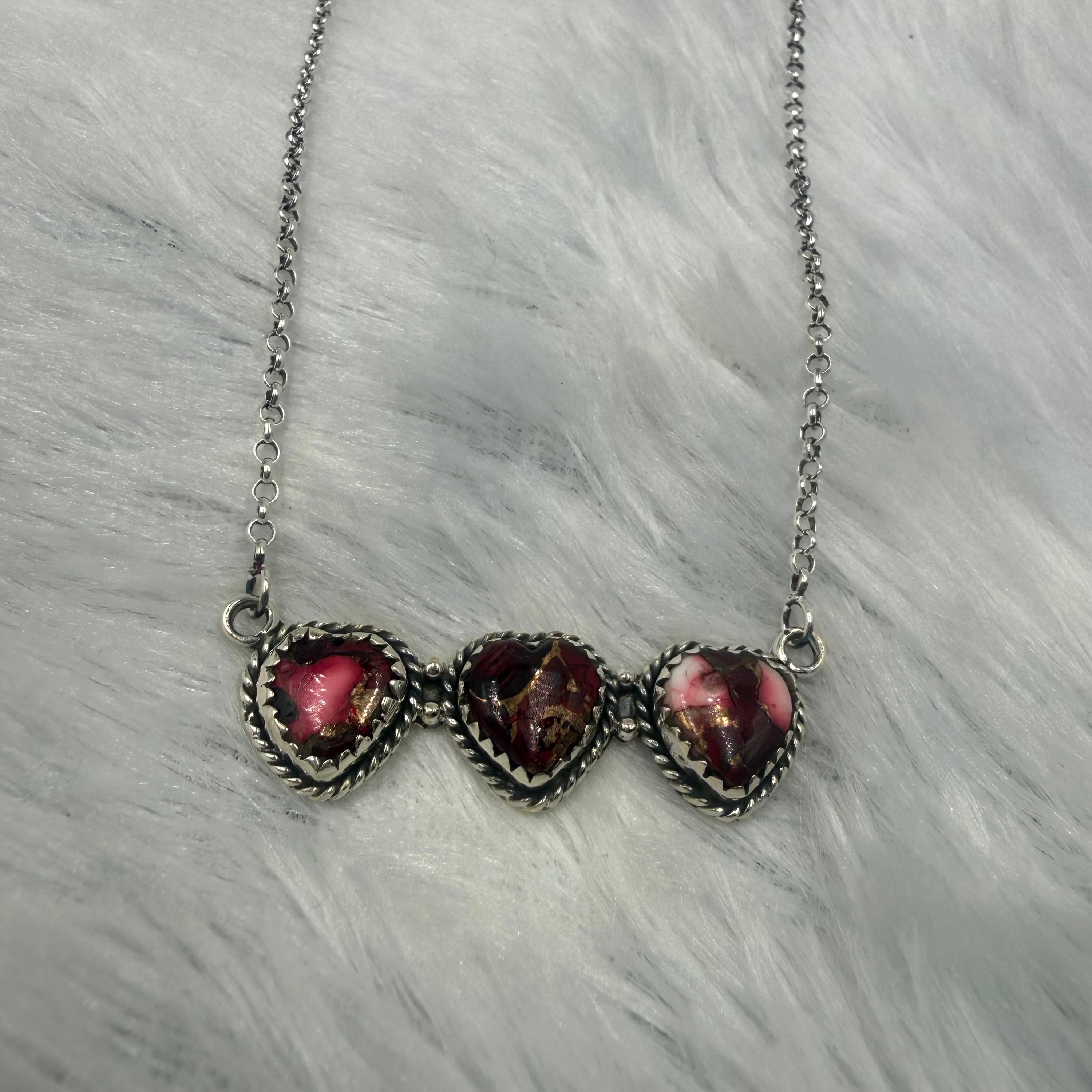 Rose dhalia kingman turquoise stone heart Necklace: Southwest Sterling Silver, 18" + 2" Extender