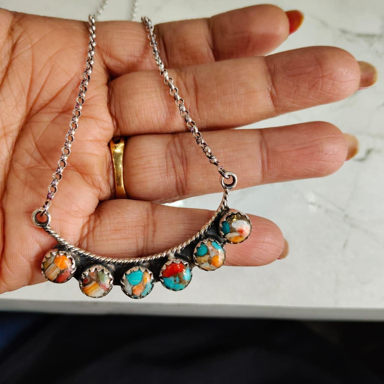 Spiny oyster Turquoise Necklace: Southwest Sterling Silver necklace , 18" + 2" Extender gift to her
