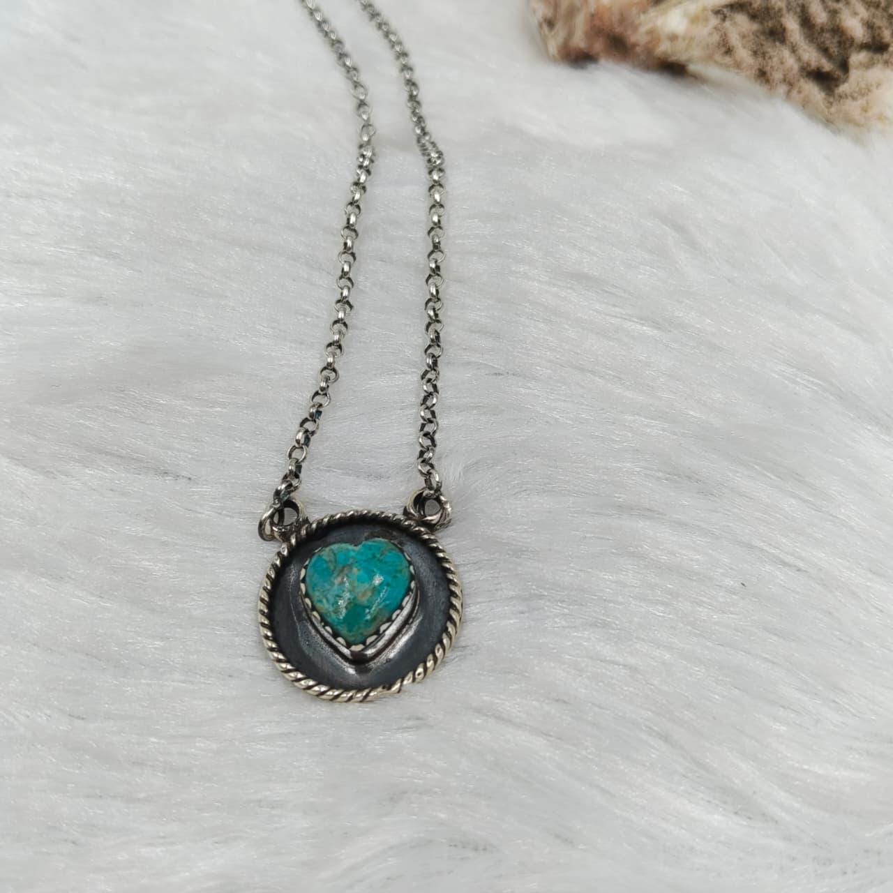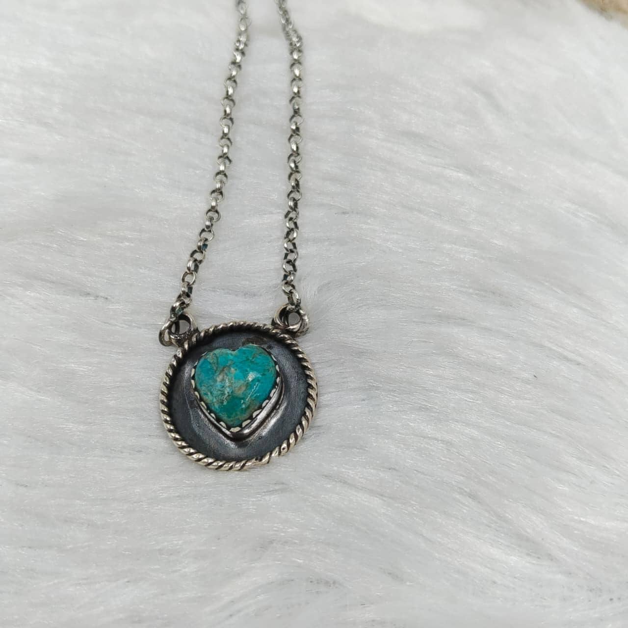 Turquoise & Sterling Silver Necklace. It measures 20 inches long with hang while the chain measures 18 inches long. Signed stamped sterling silver.
