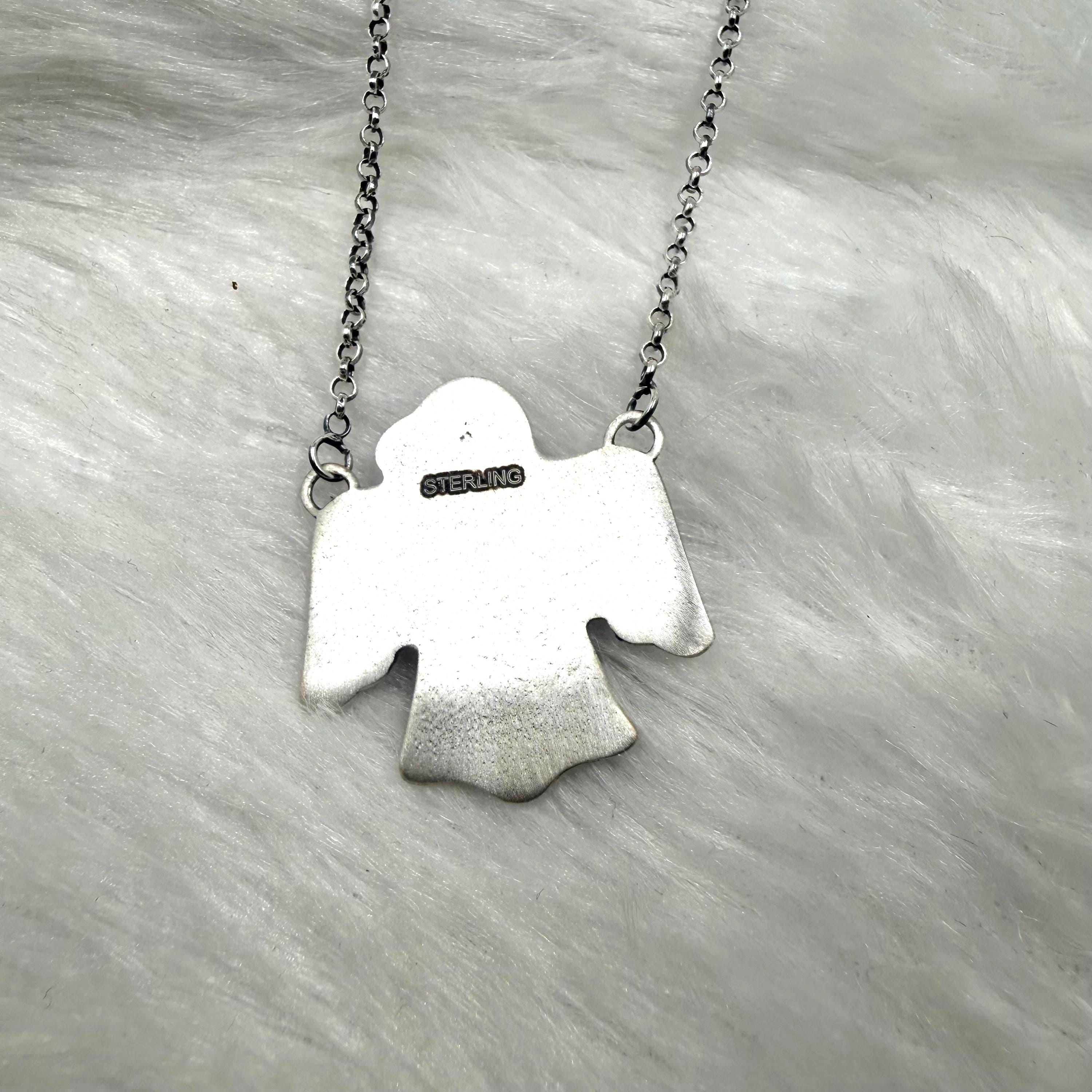 Beautiful Necklace. Turquoise & Sterling Silver Necklace. It measures 20 inches long with hang while the chain measures 18 inches long. Signed stamped sterling silver.