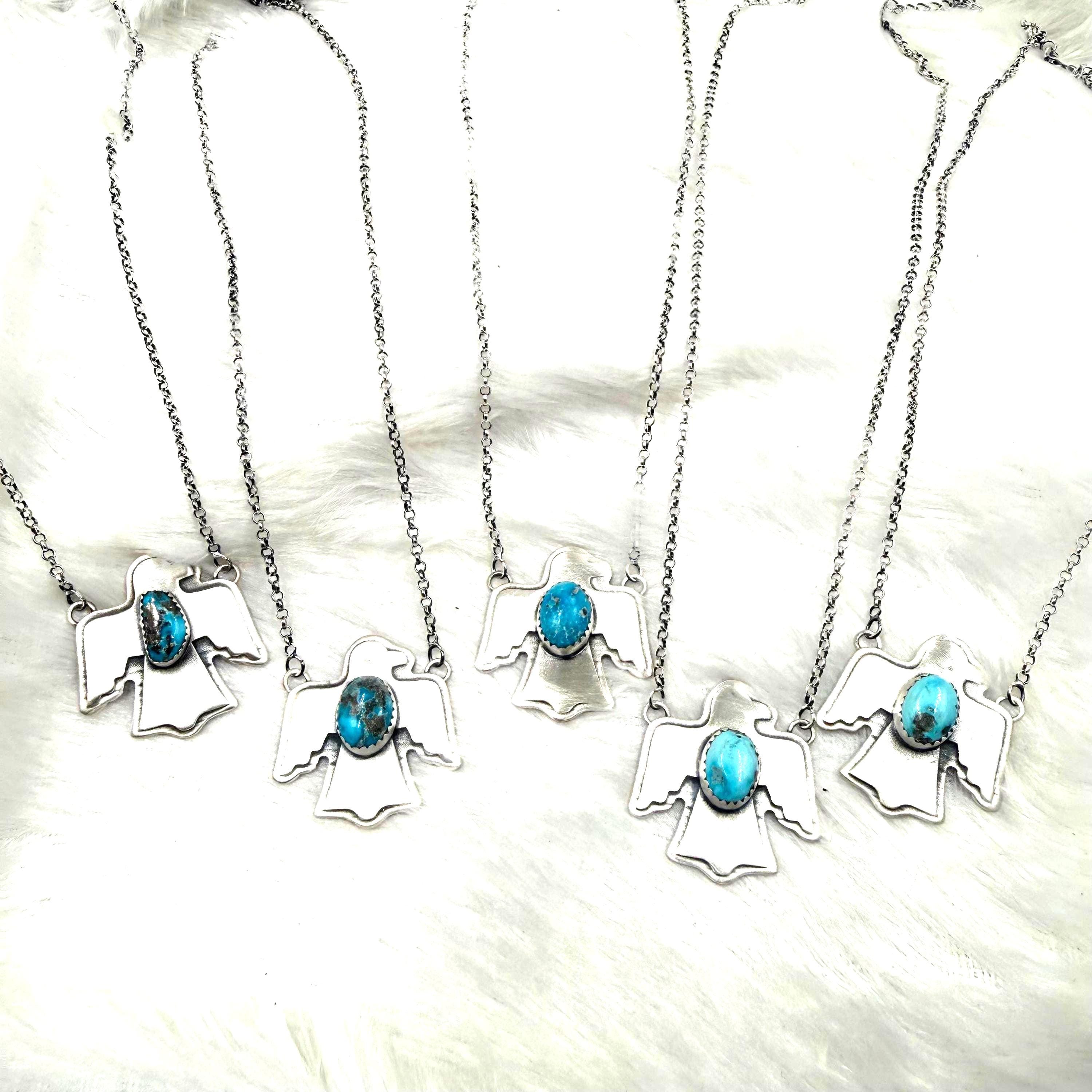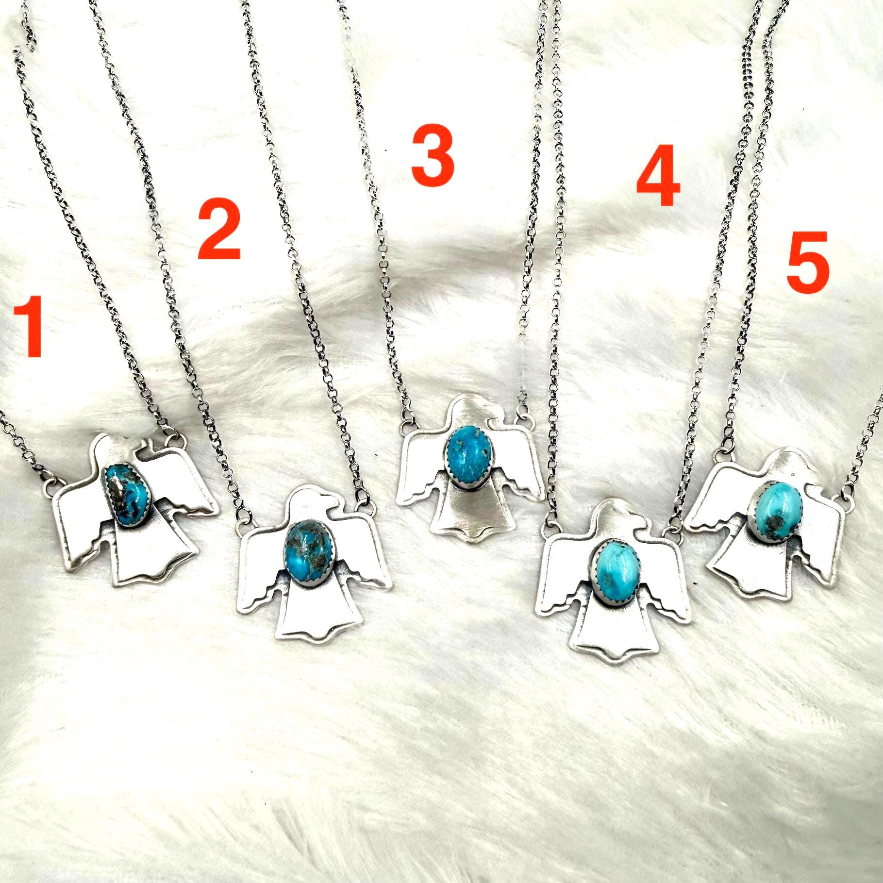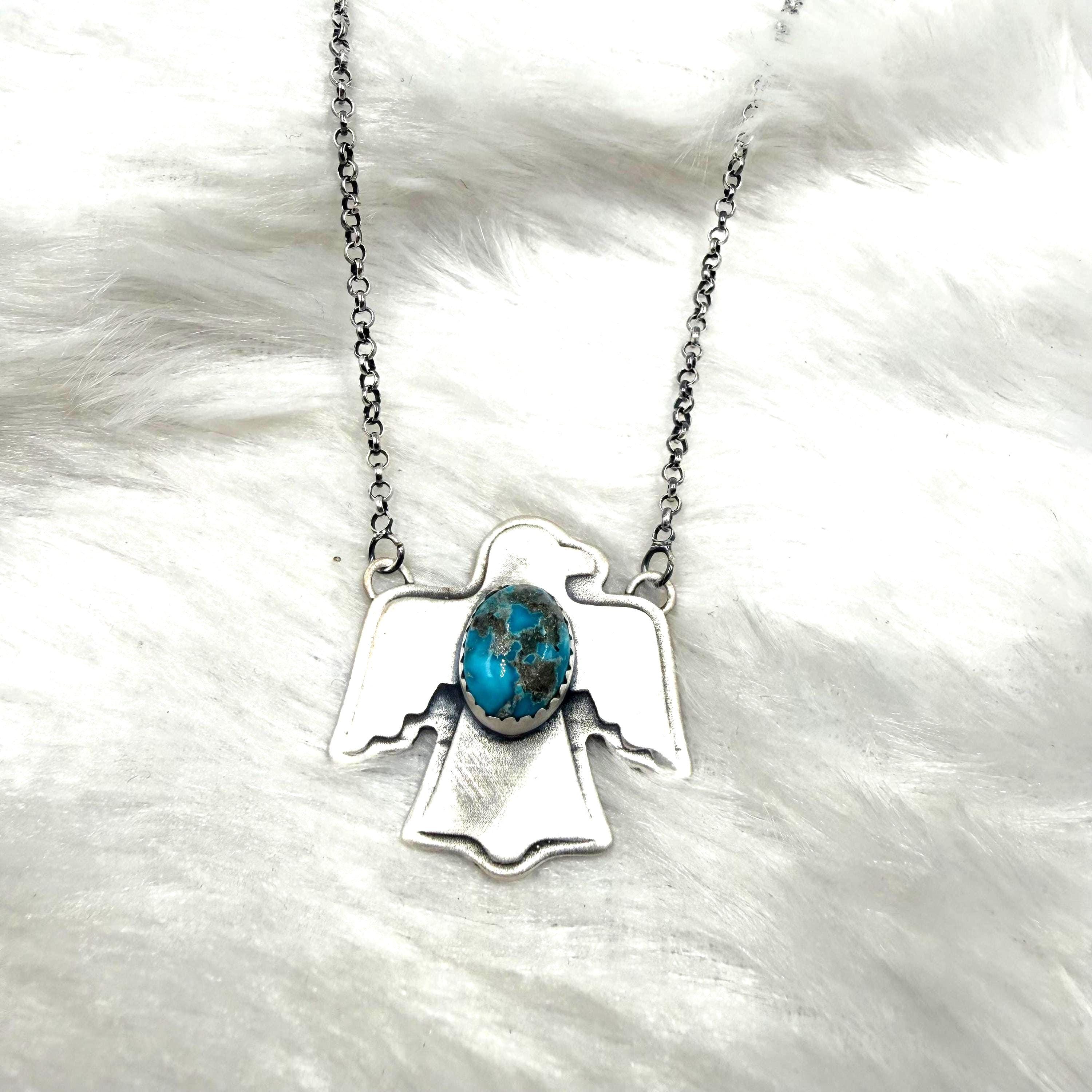 Blue Bird Turquoise Eagle Necklace: Sterling Silver Southwest jewllery ,back close (18" + 2" Extender) gift fo her