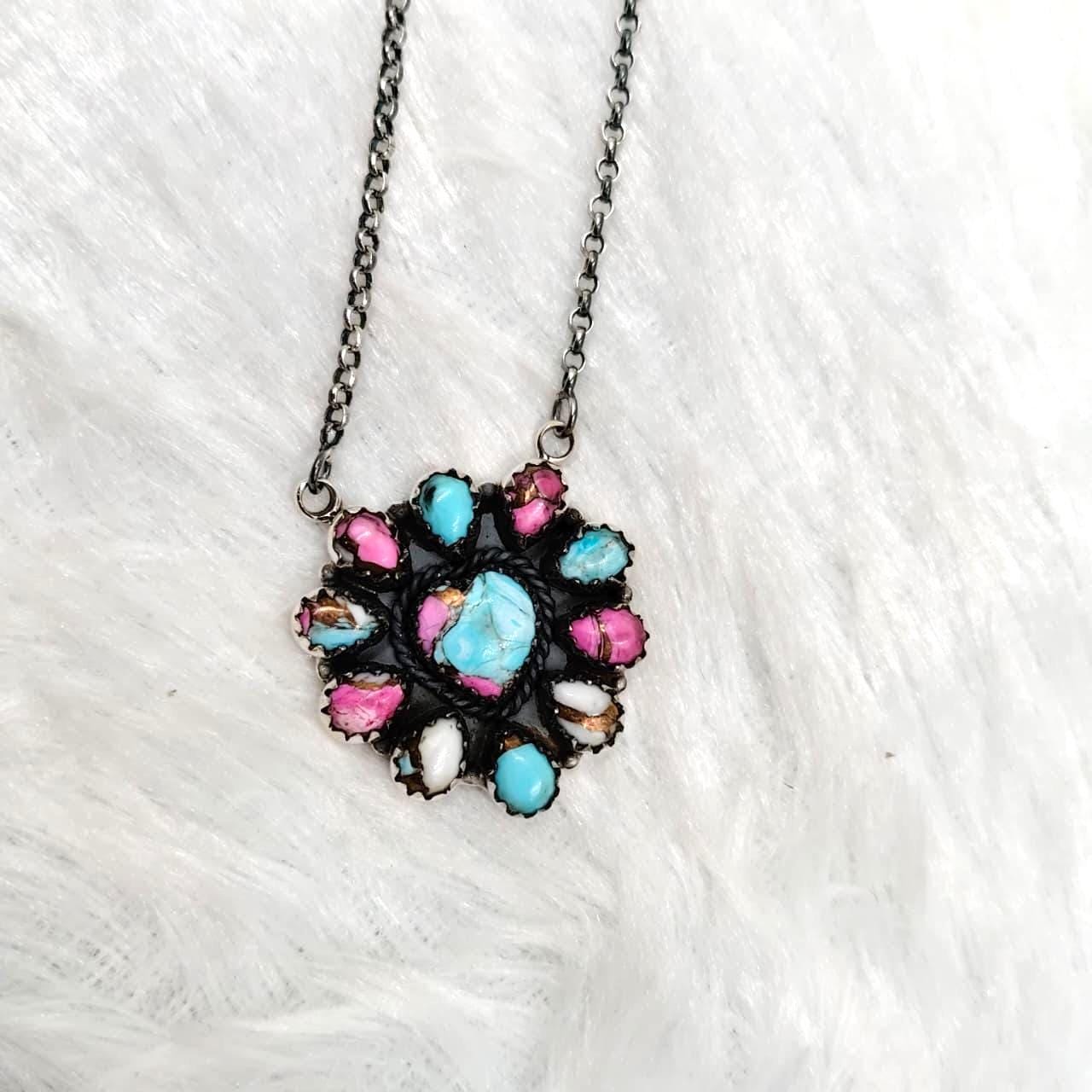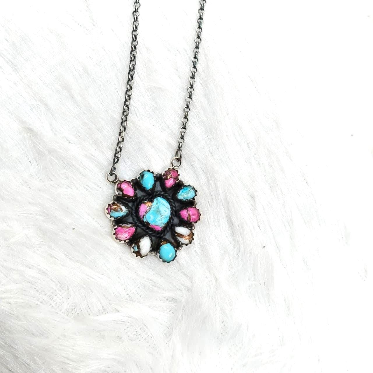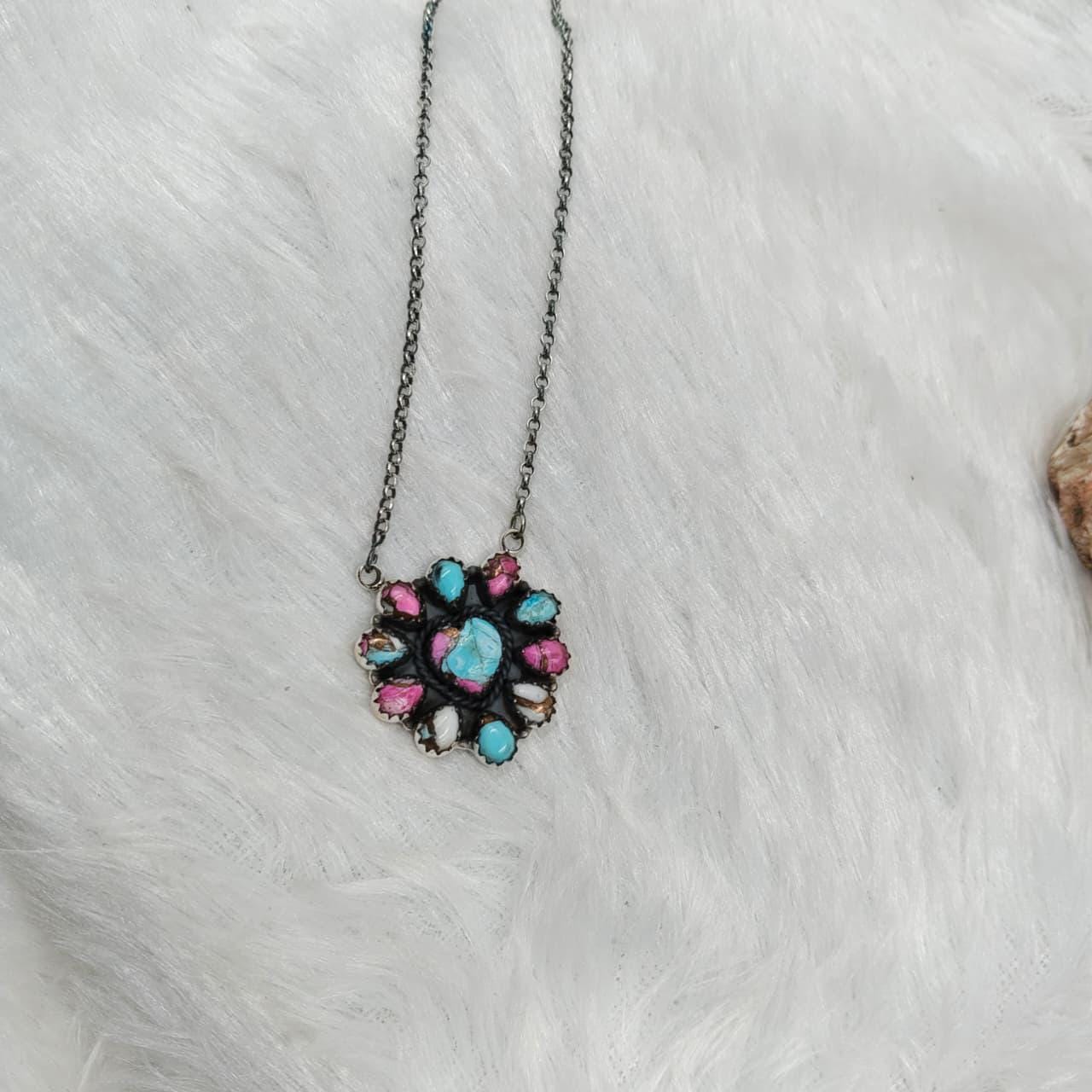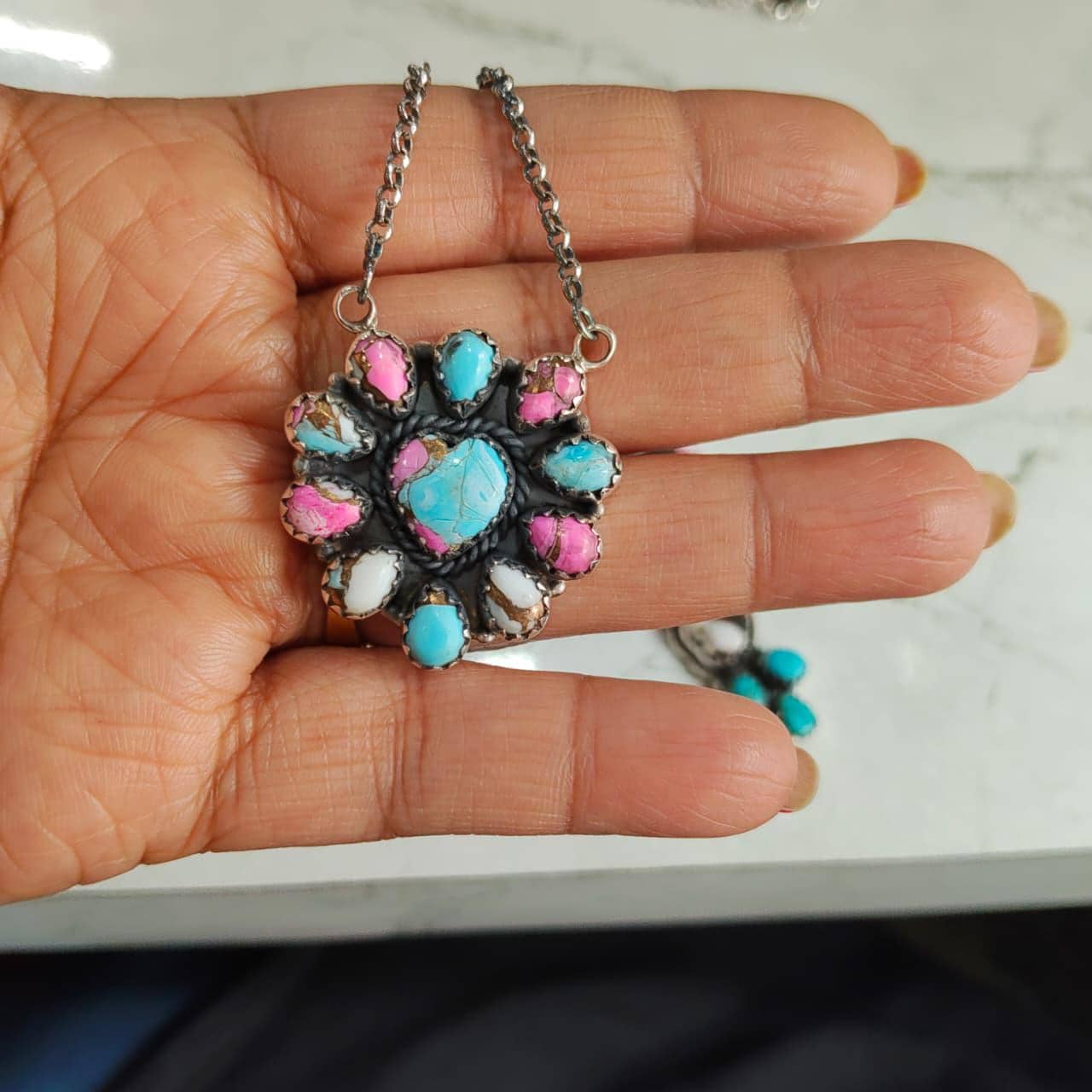 Cotton candy Turquoise Cluster Necklace: Sterling Silver Southwest jewllery (18" + 2" Extender) gift fo her