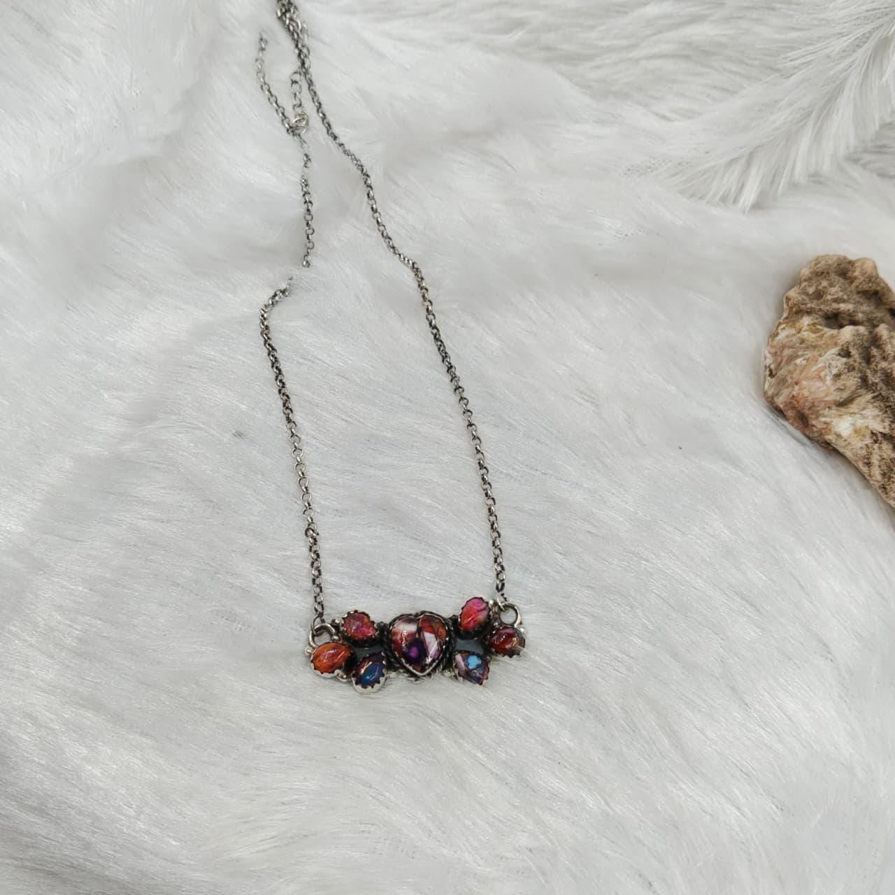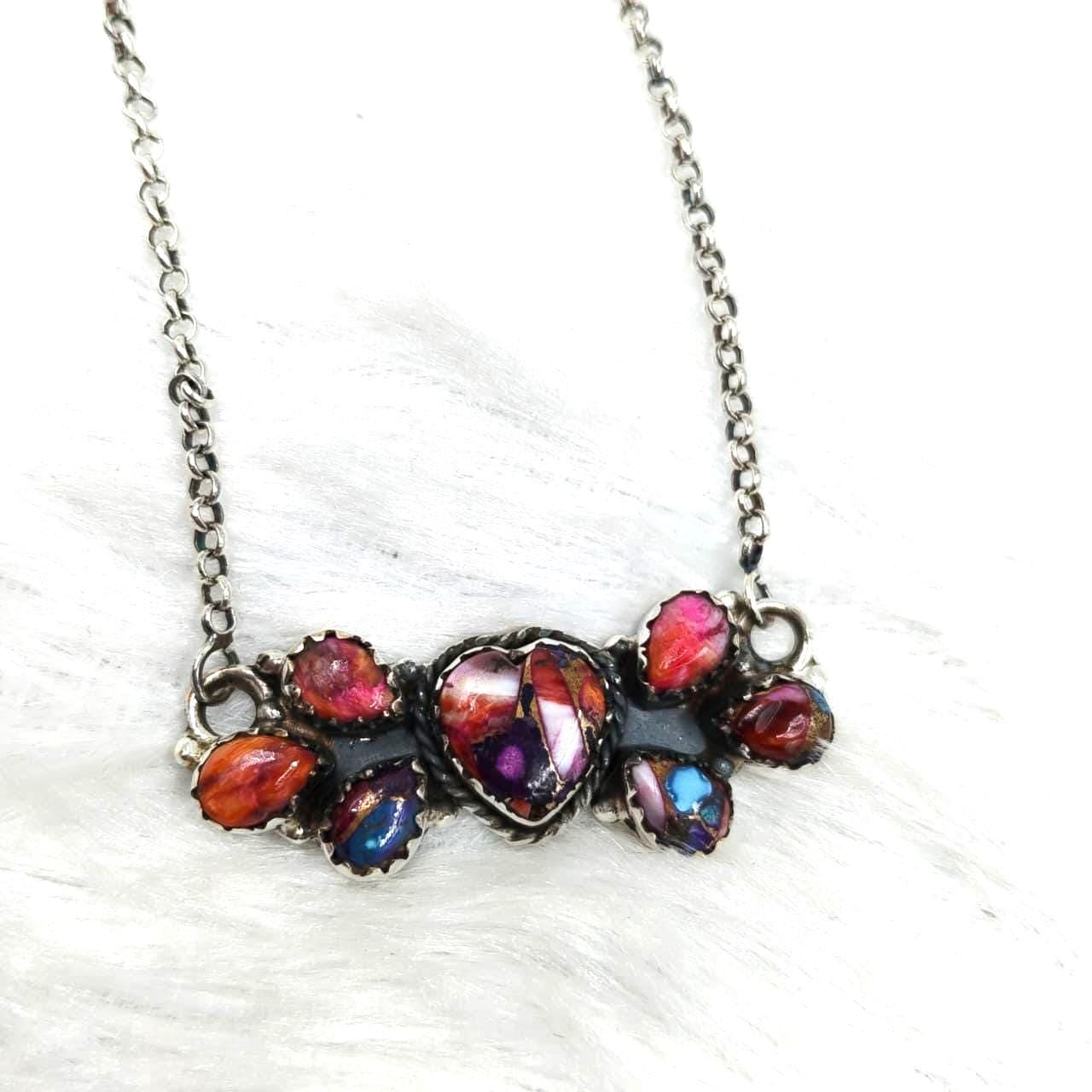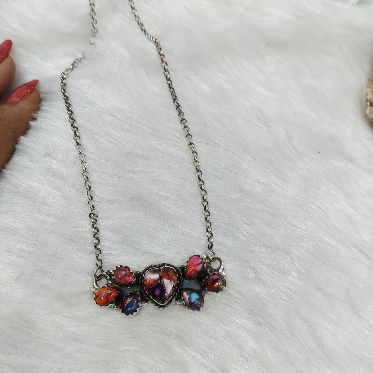 Pink dhalia turquoise southwest Necklace (18" + 2" Extender), sterling silver necklace , gift for her