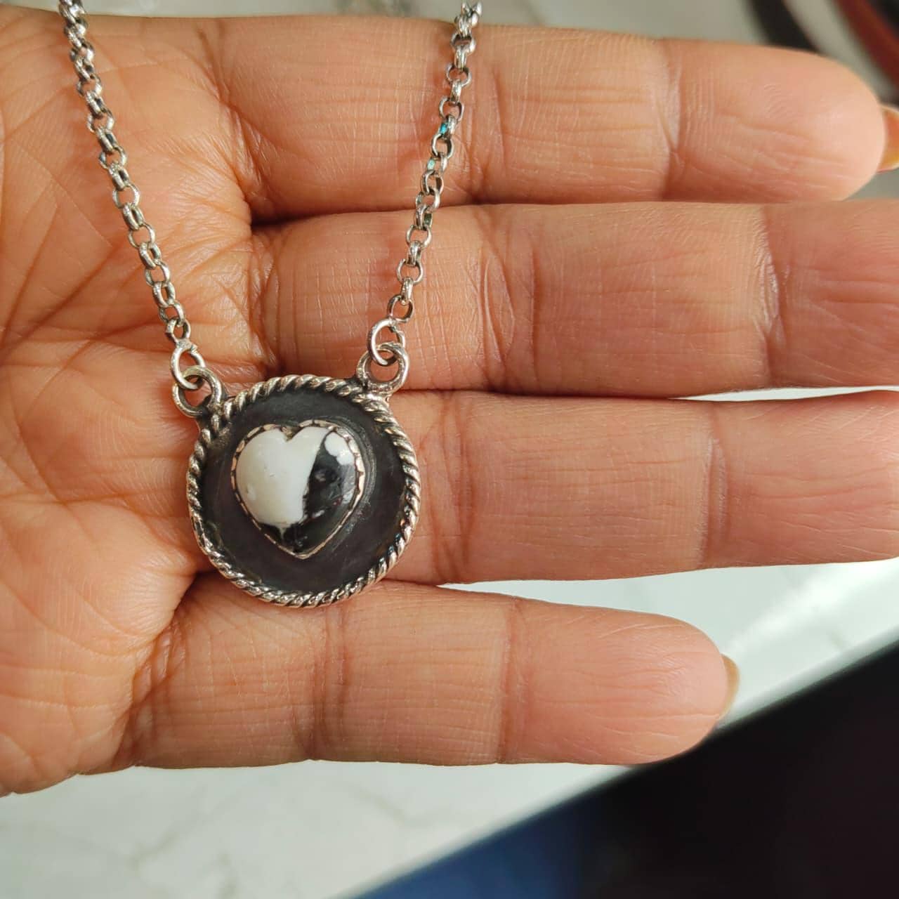 White Buffalo Turquoise pendant Southwest Sterling Silver, 18" + 2" Extender gift for her