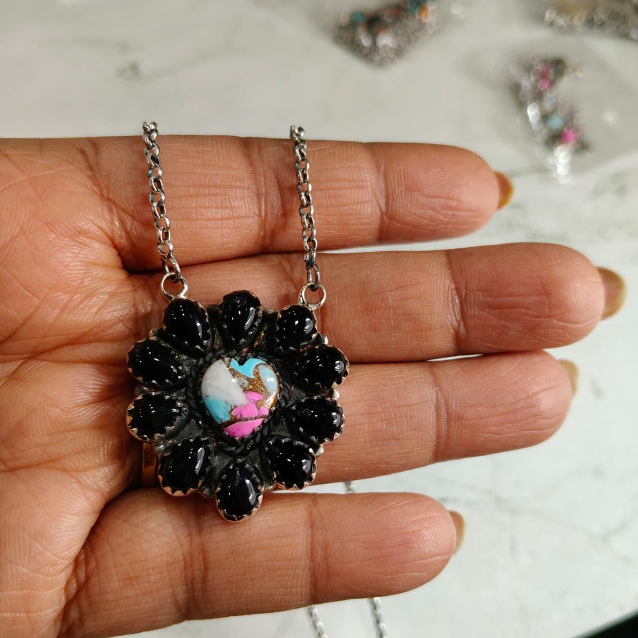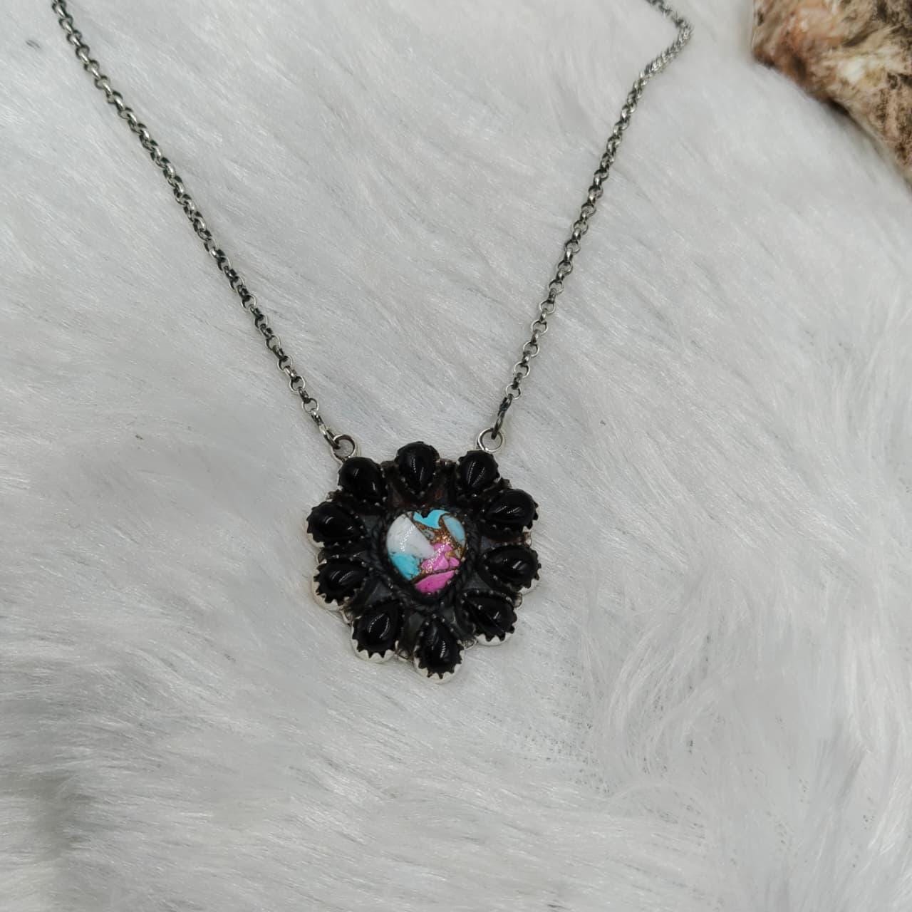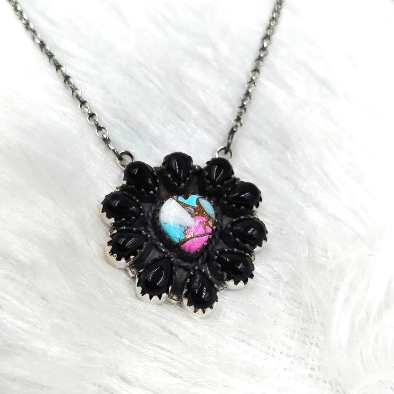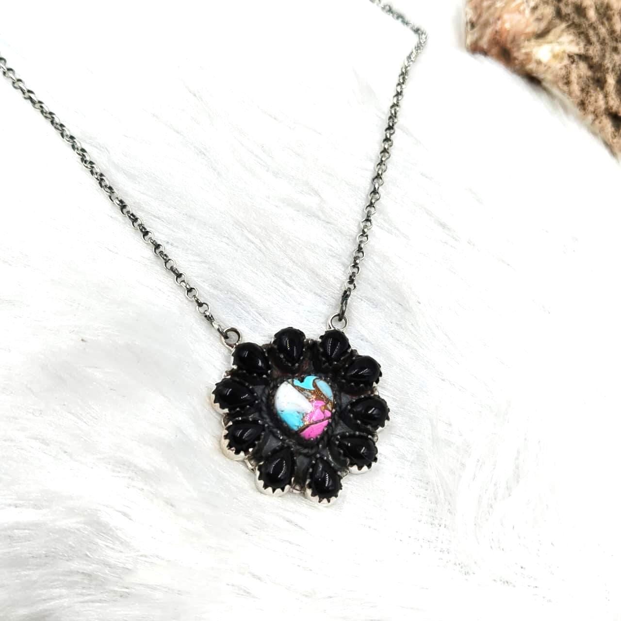 Black onyx+ cotton candy Cluster Necklace: Sterling Silver Southwest jewllery (18" + 2" Extender) gift fo her