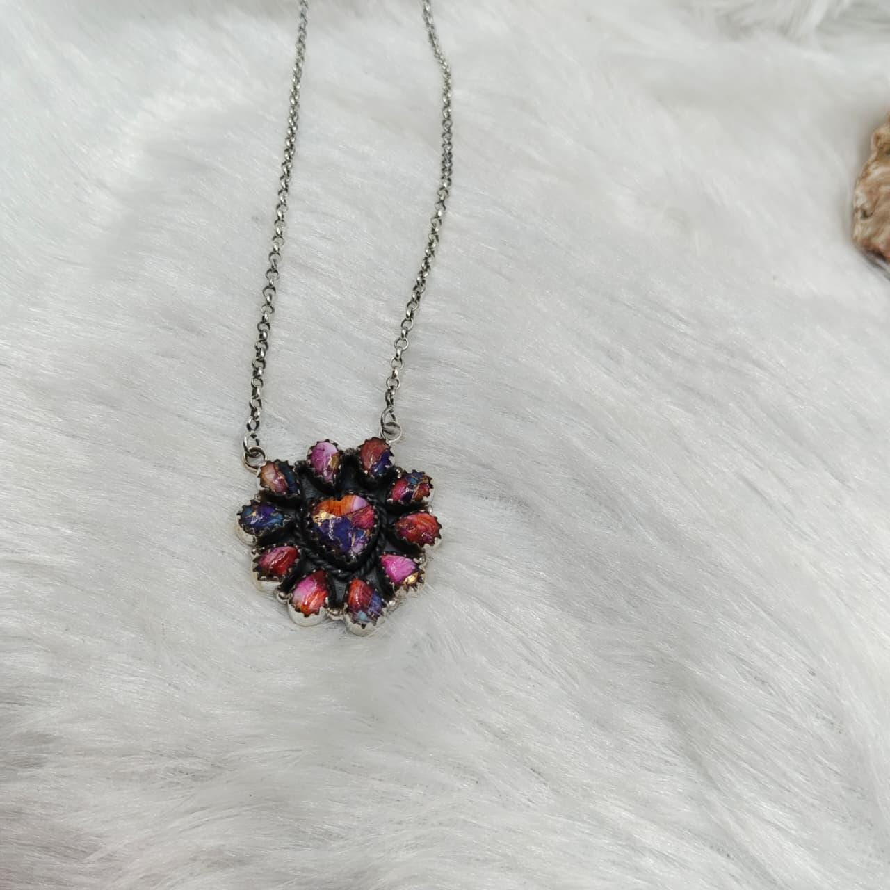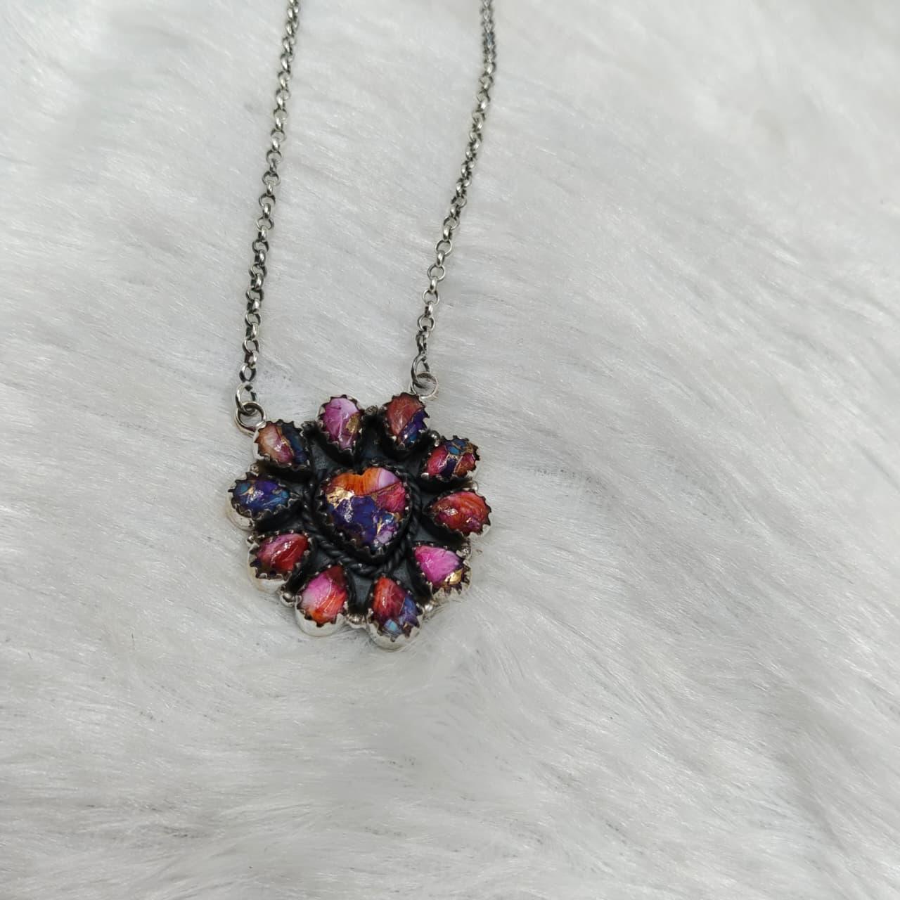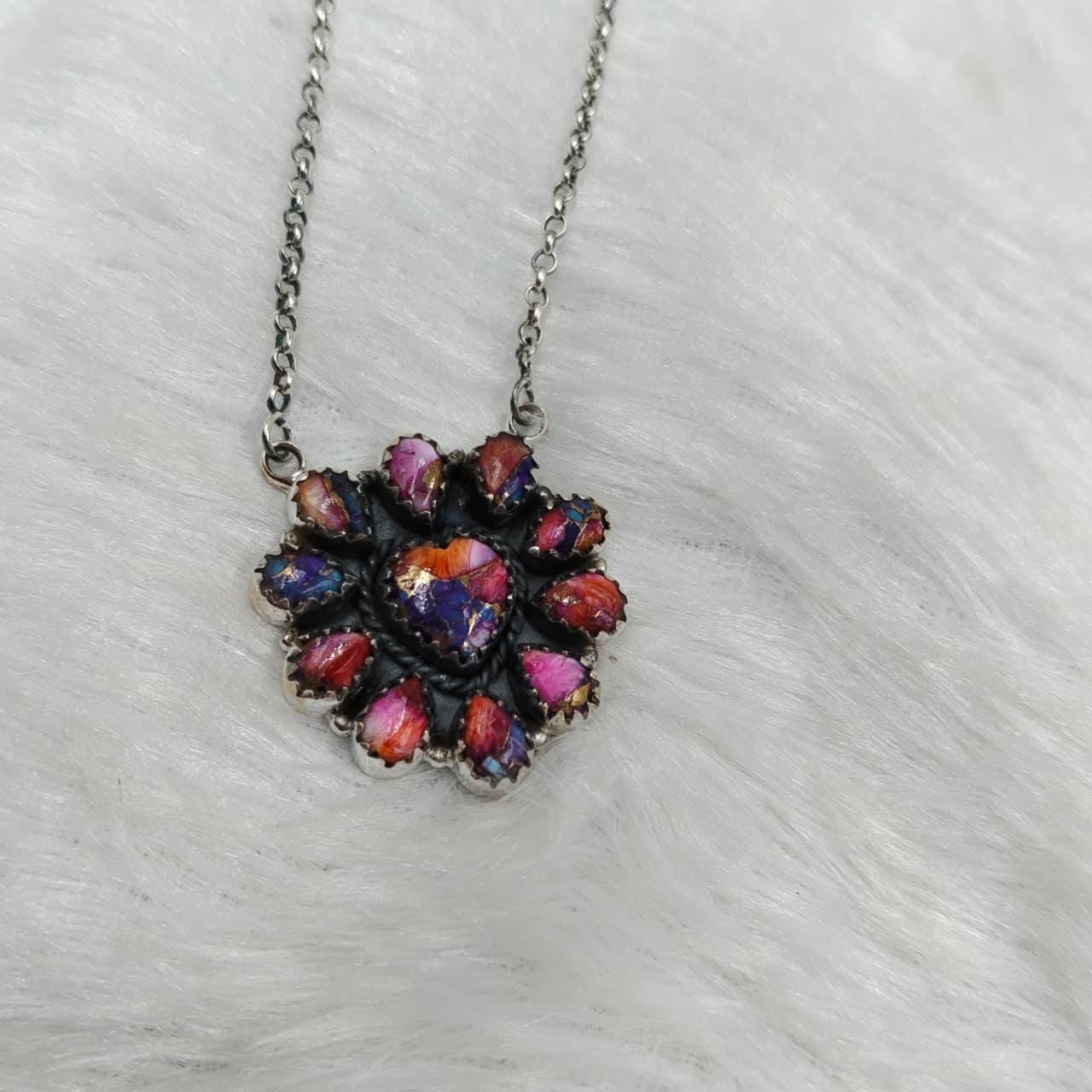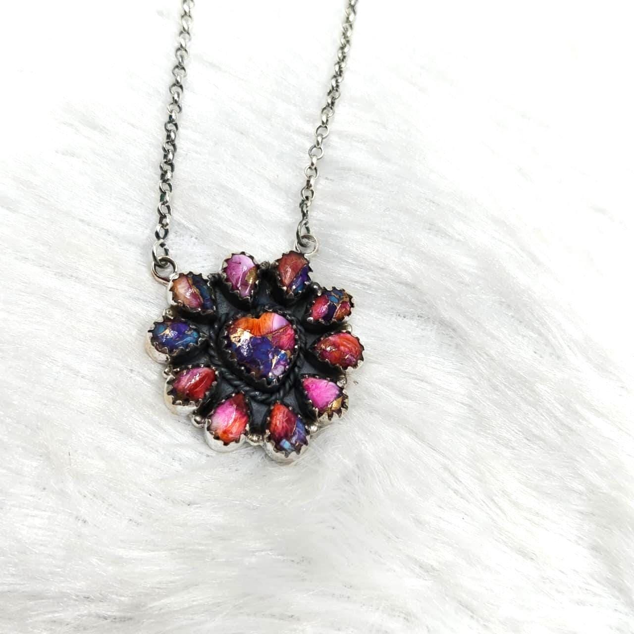 Pink dhalia Turquoise Cluster Necklace: Sterling Silver Southwest jewllery (18" + 2" Extender) gift fo her