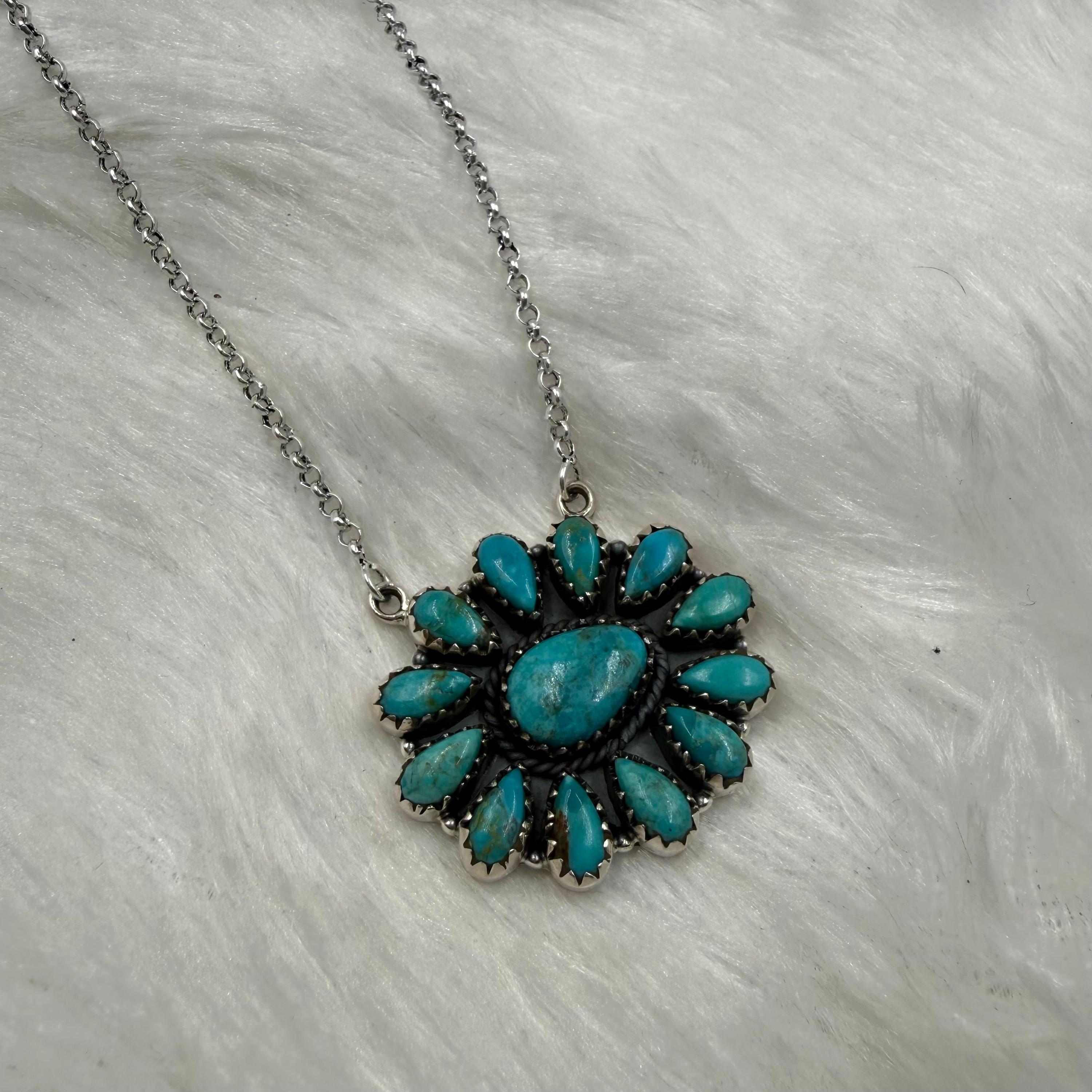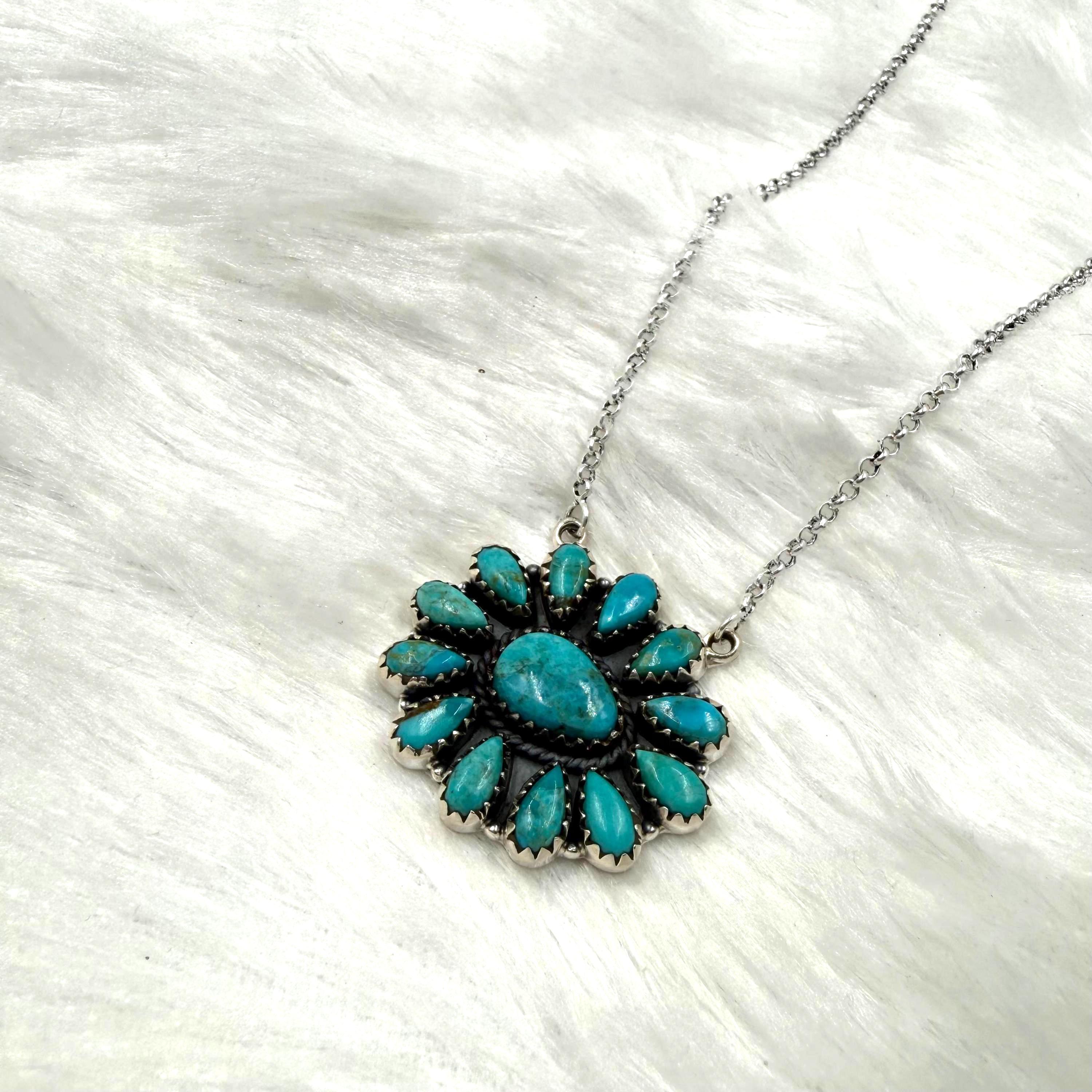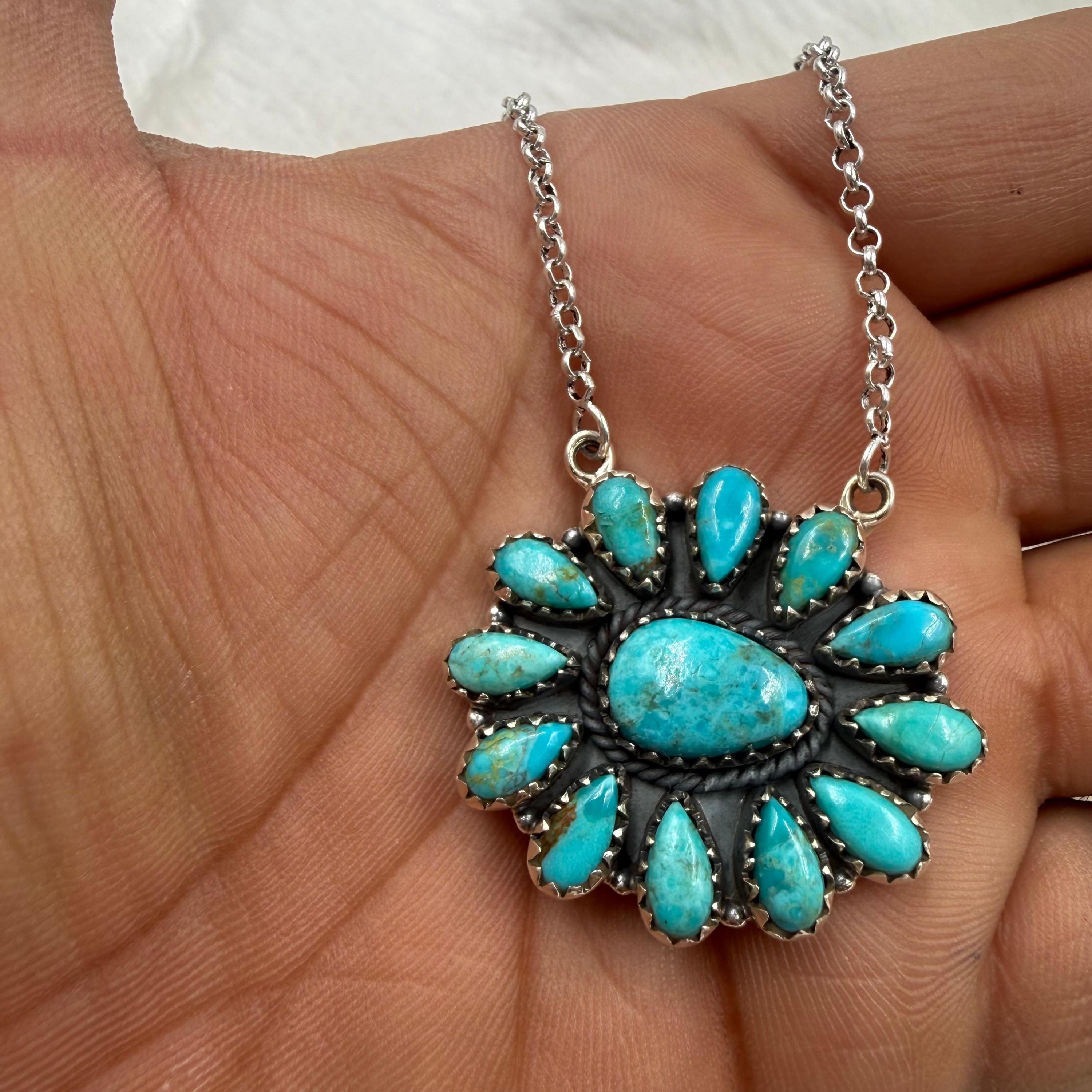 Blue Turquoise Cluster Necklace: Sterling Silver Southwest jewllery (18" + 2" Extender) gift fo her