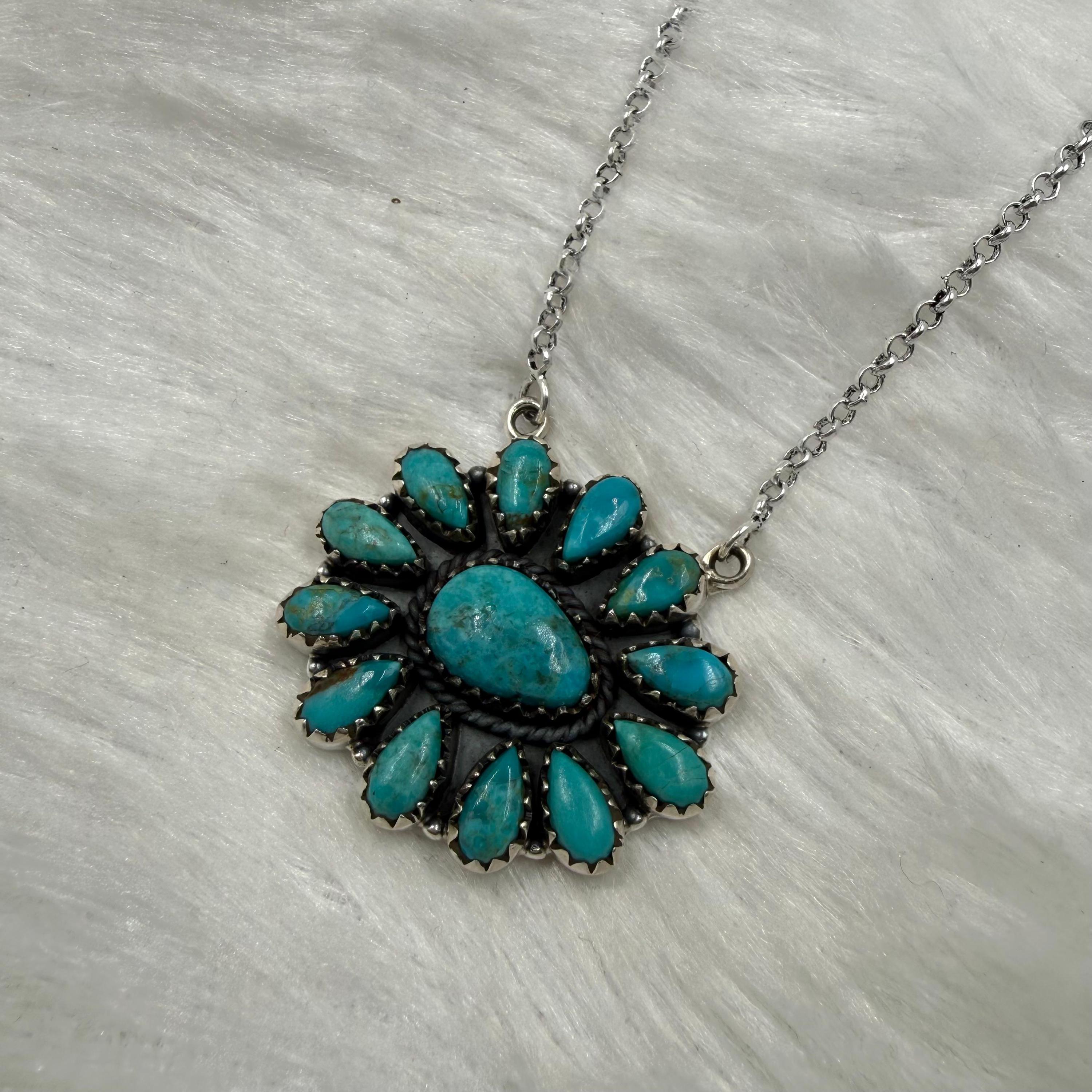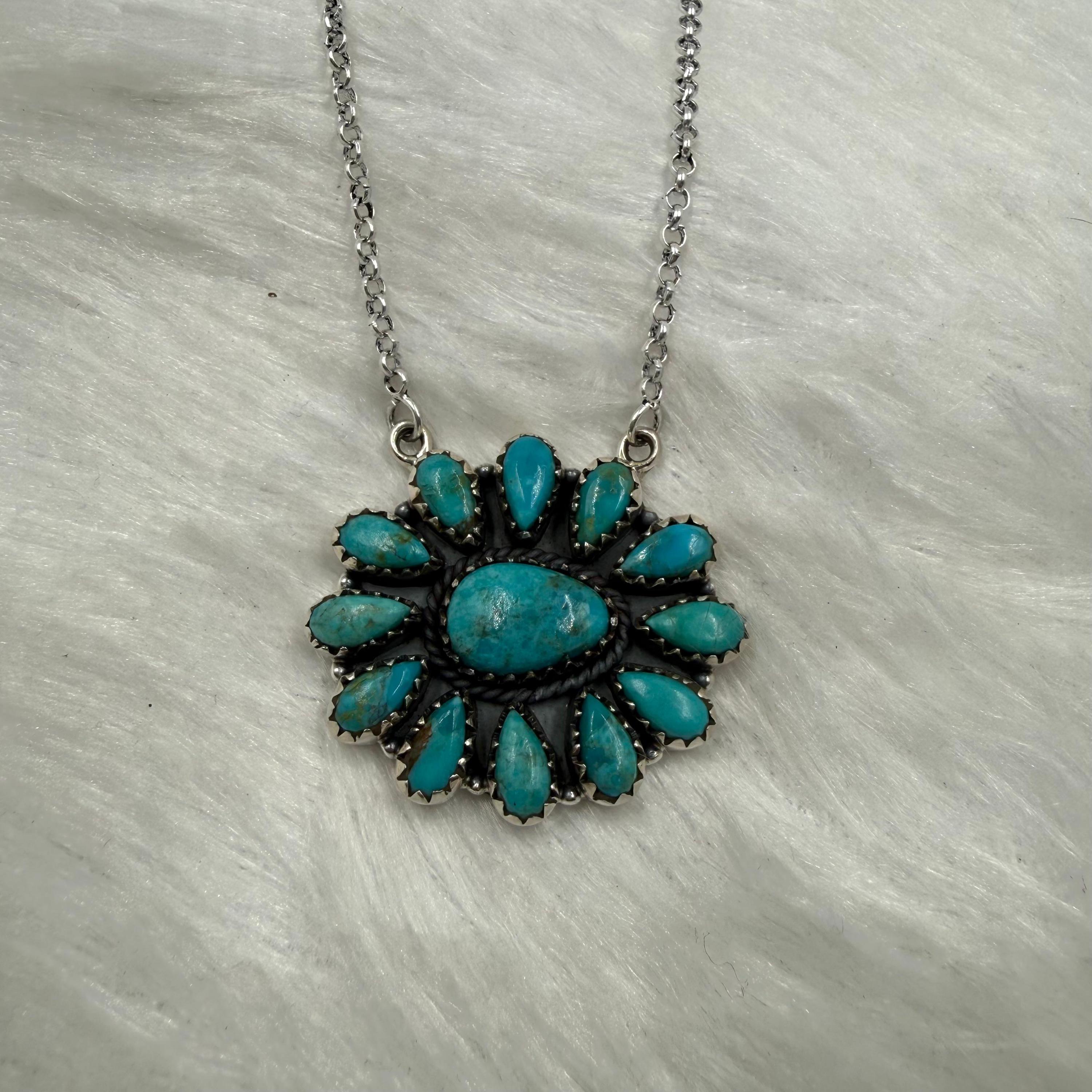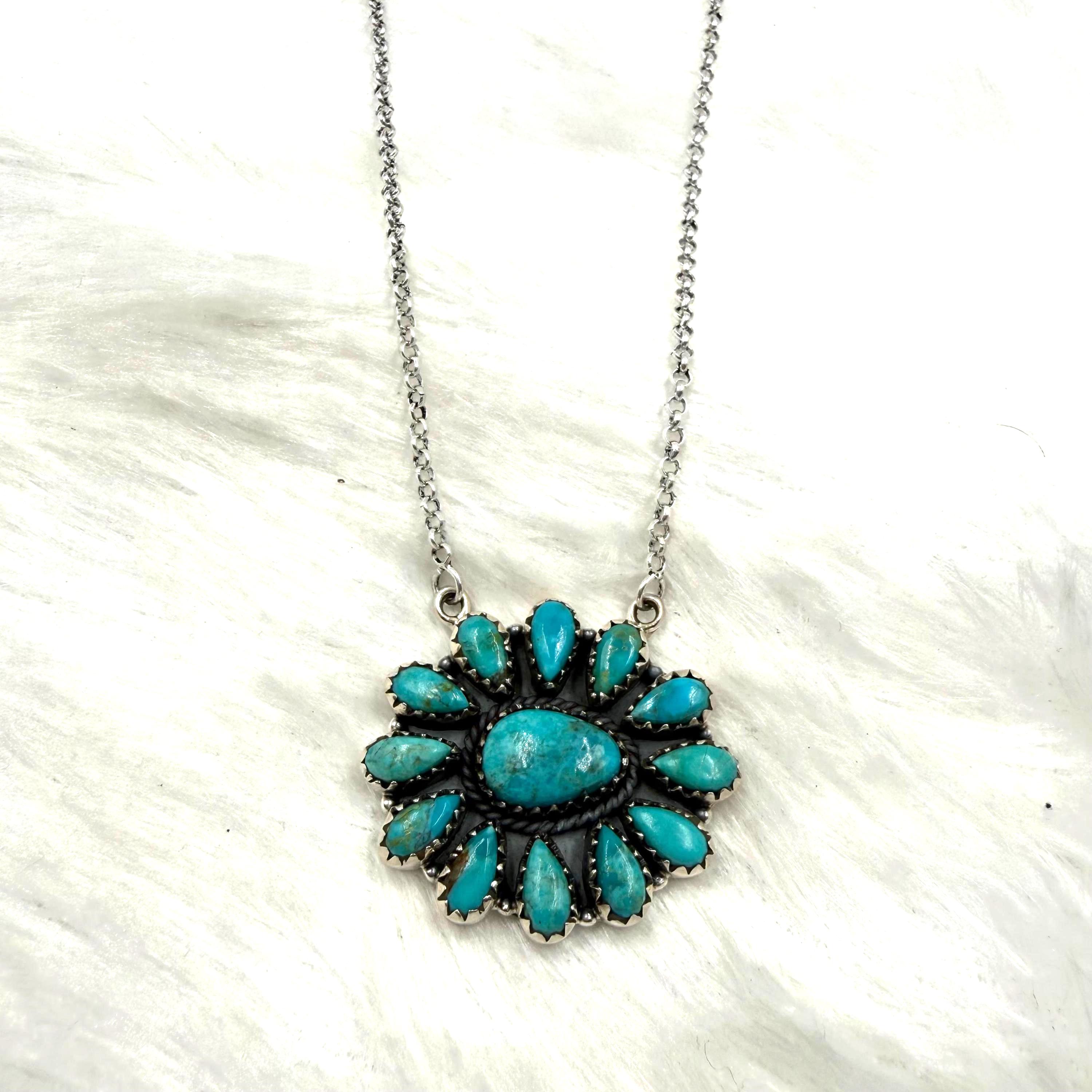 Blue Turquoise Cluster Necklace: Sterling Silver Southwest jewllery (18" + 2" Extender) gift fo her