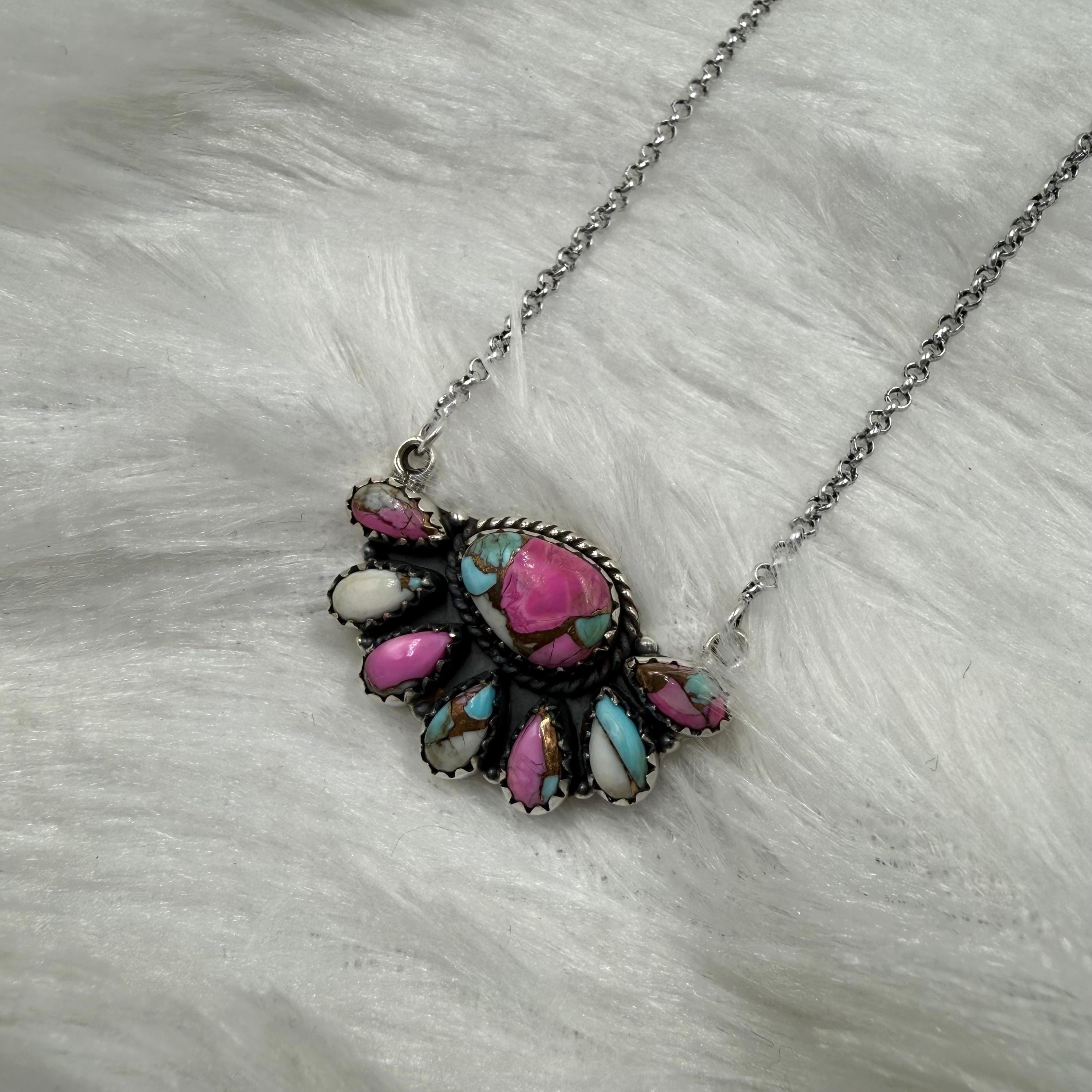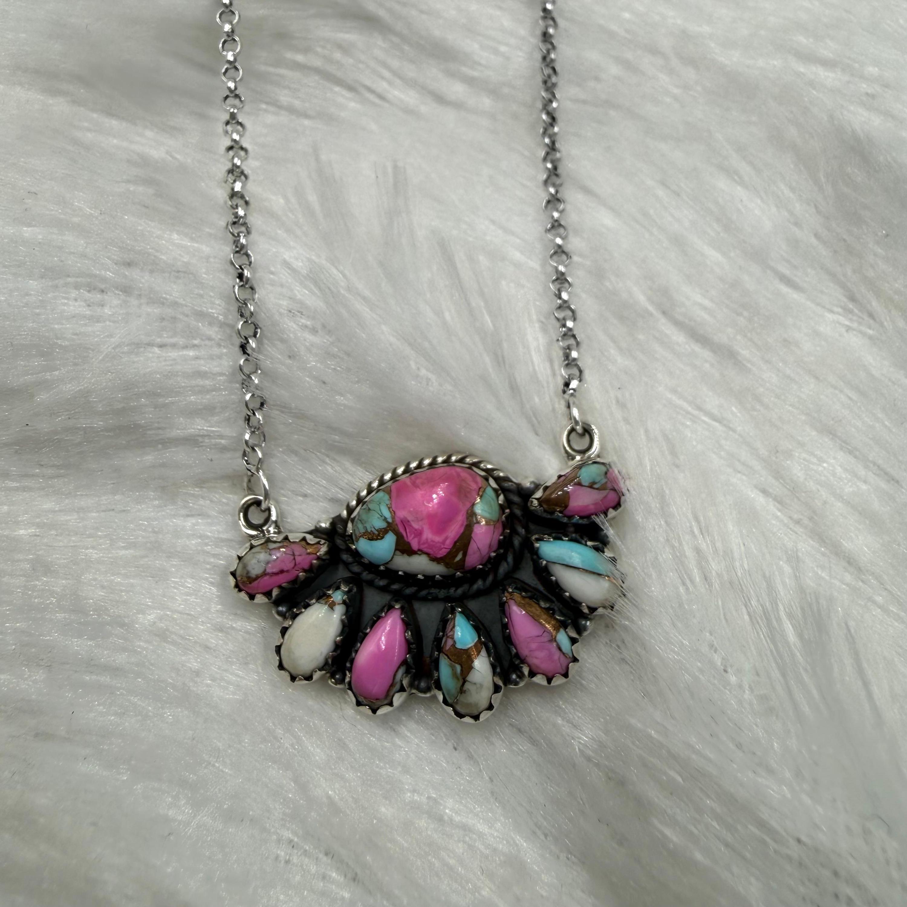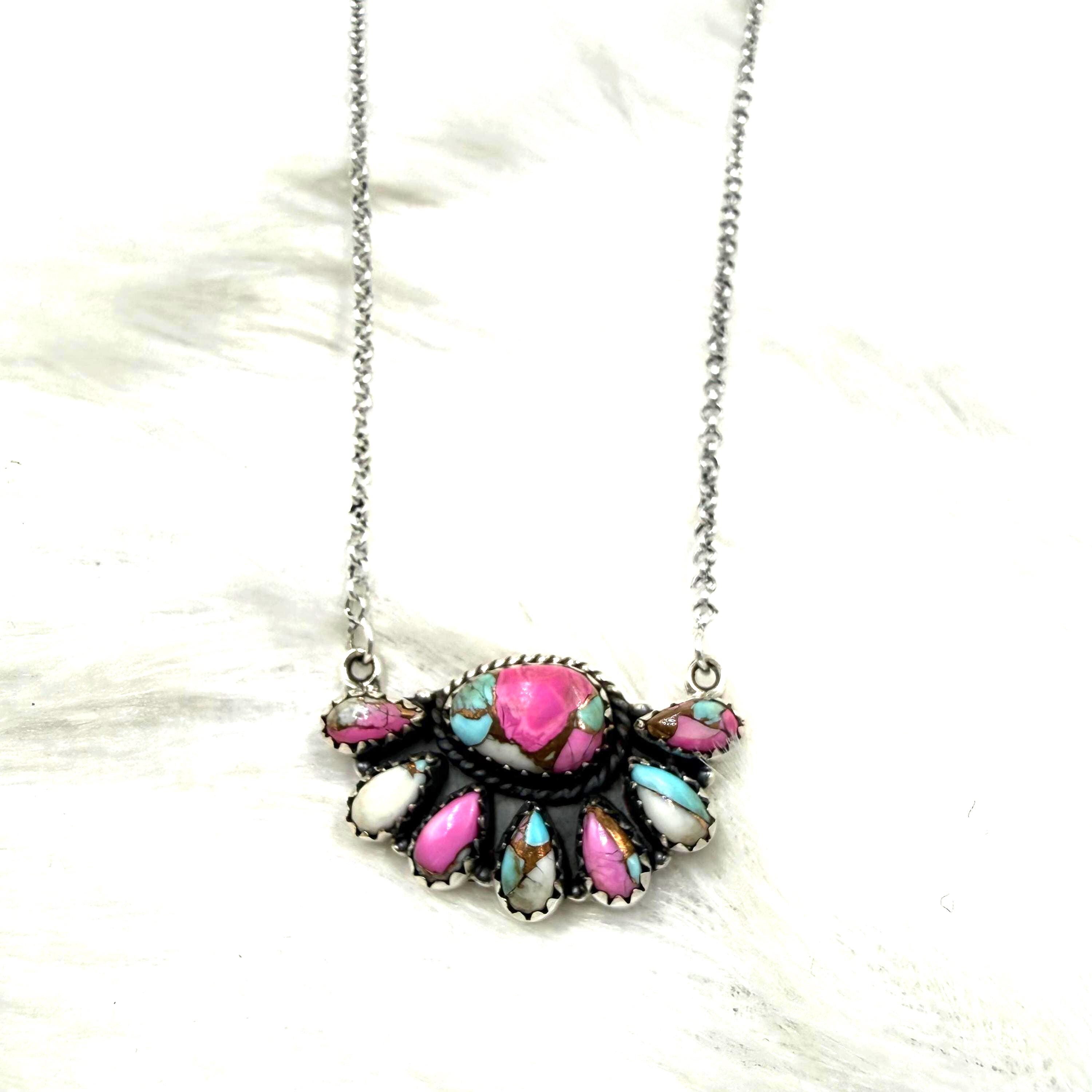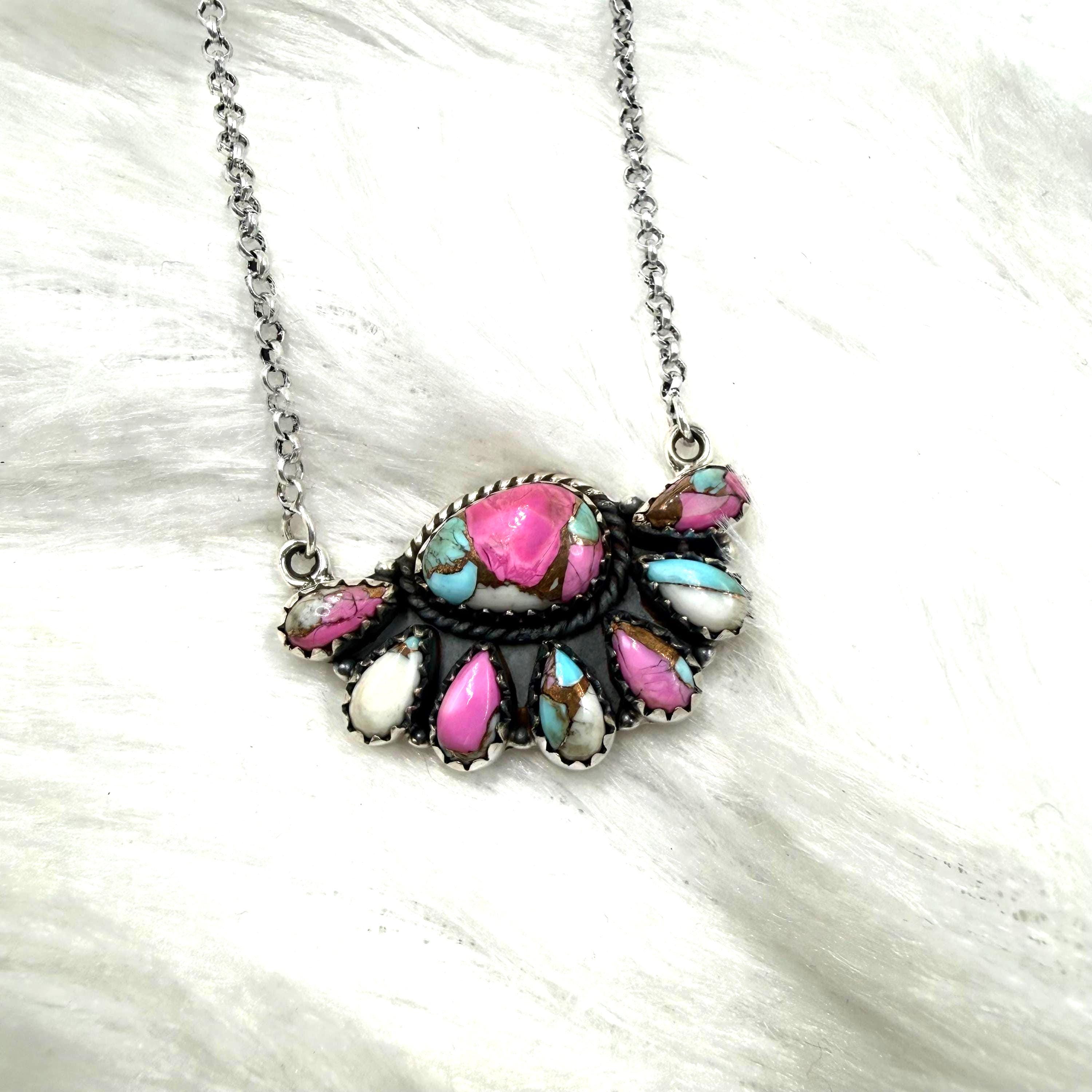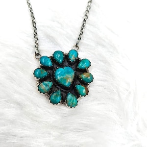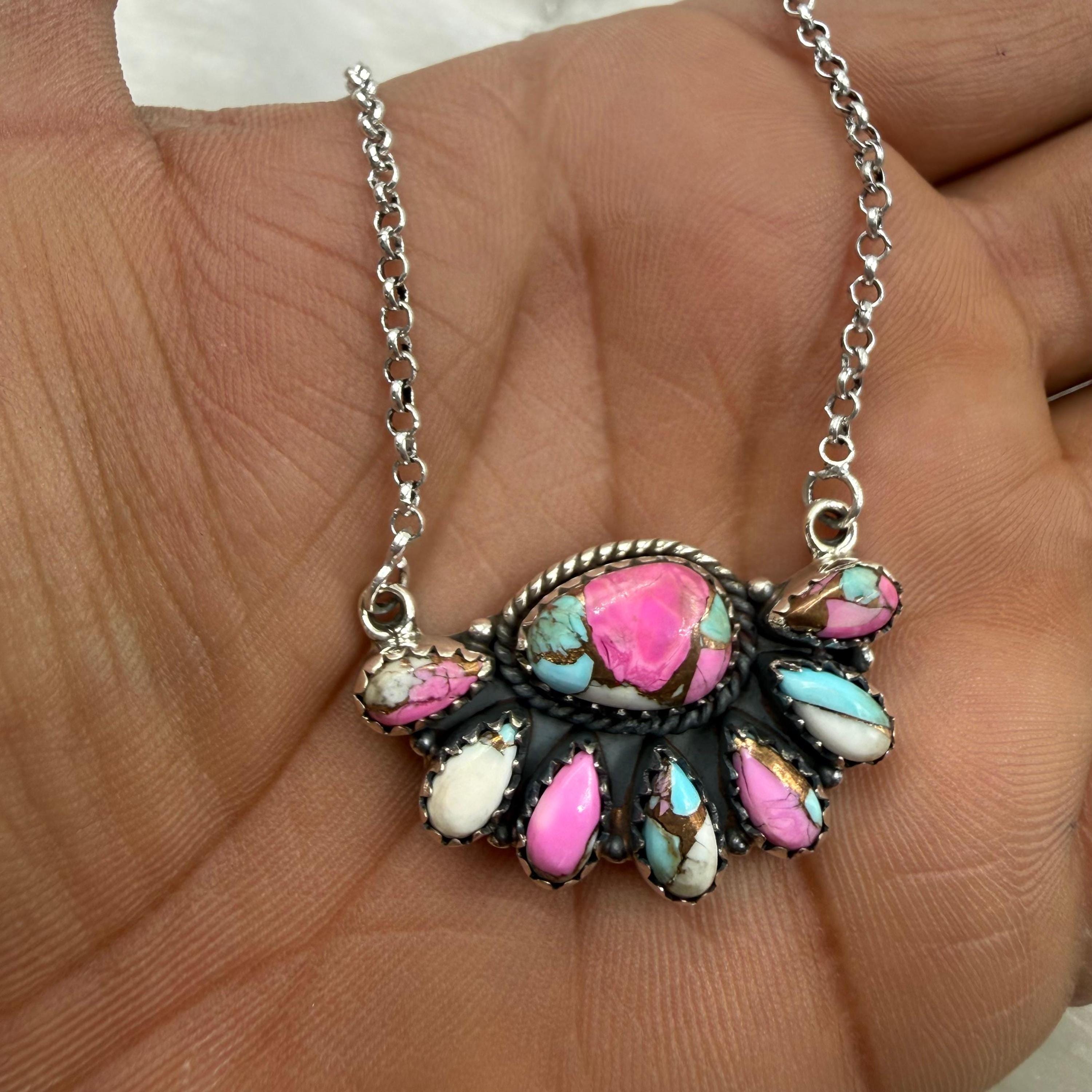 Cotton Candy Turquoise Cluster Necklace: Sterling Silver Southwest jewllery (18" + 2" Extender) gift fo her