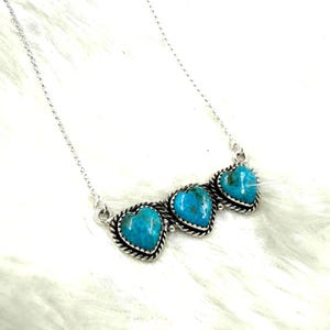 Beautiful Necklace. Turquoise & Sterling Silver Necklace. It measures 20 inches long with hang while the chain measures 18 inches long. Signed stamped sterling silver.