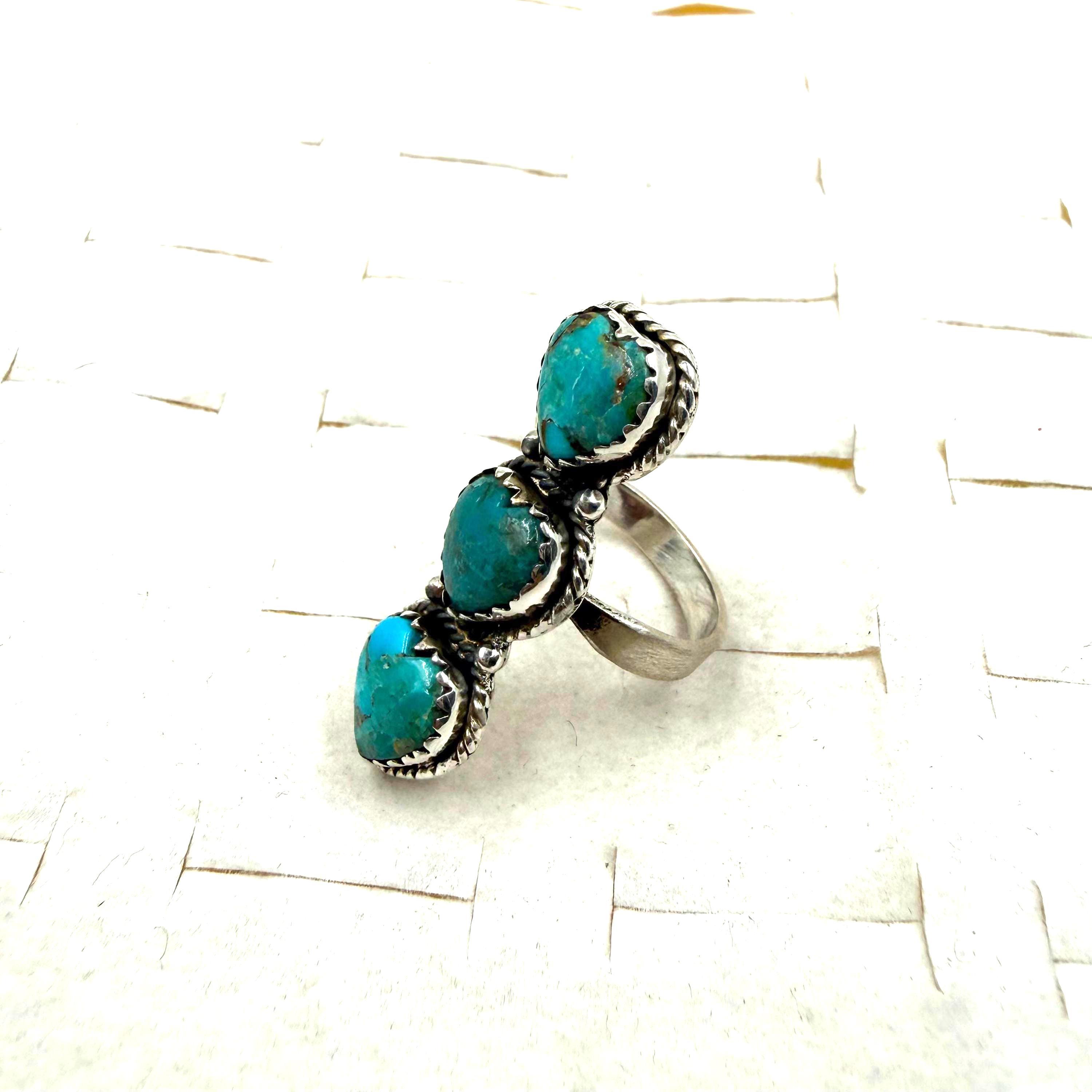 Beautiful Ring. Turquoise & Sterling Silver Ring. It measures 8us size Signed stamped sterling silver.