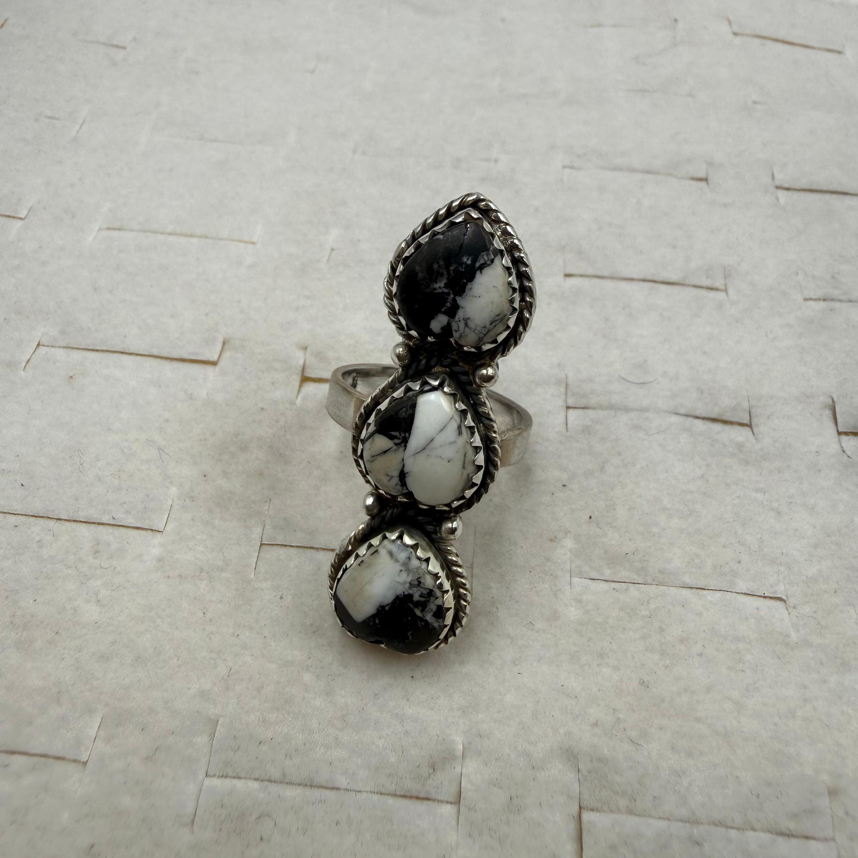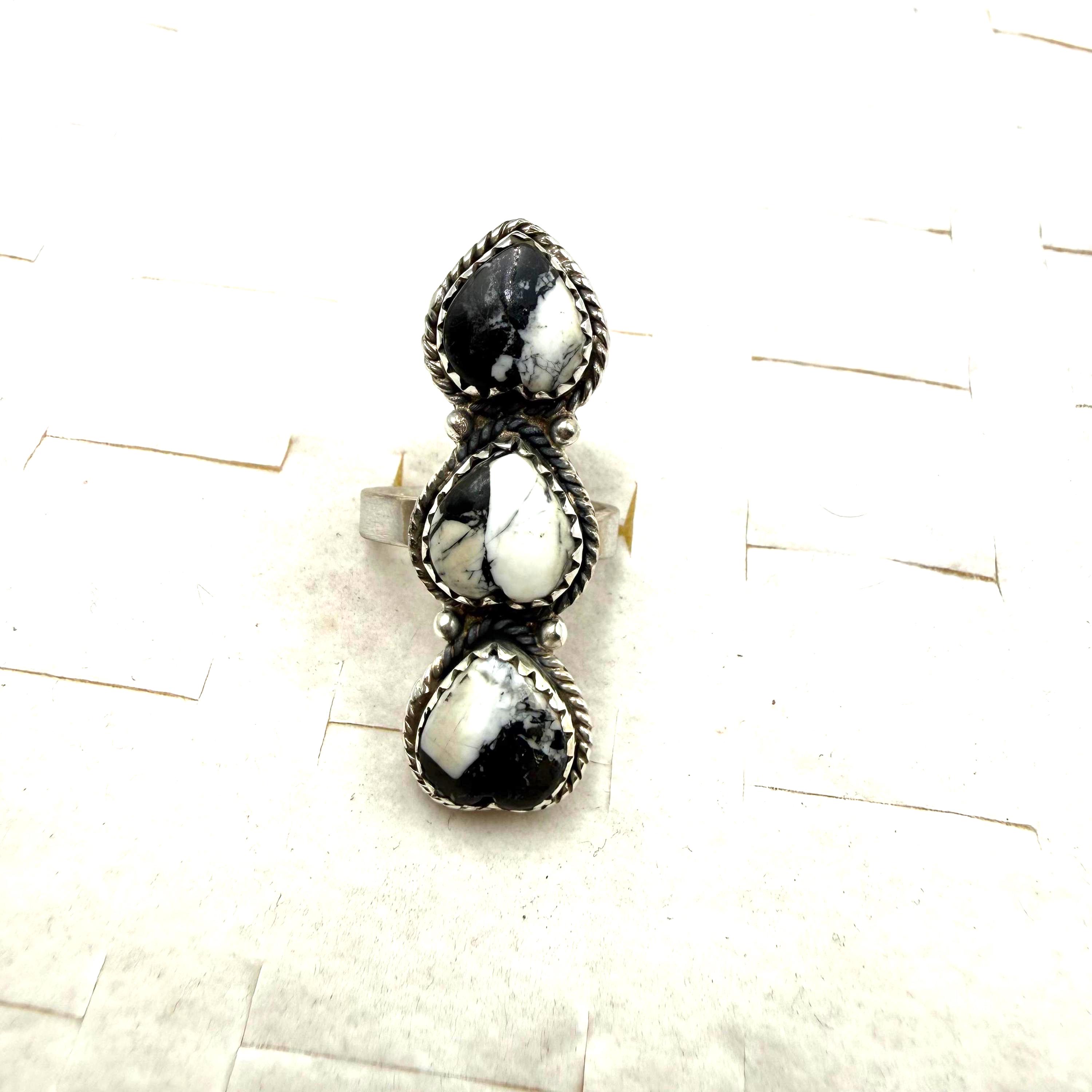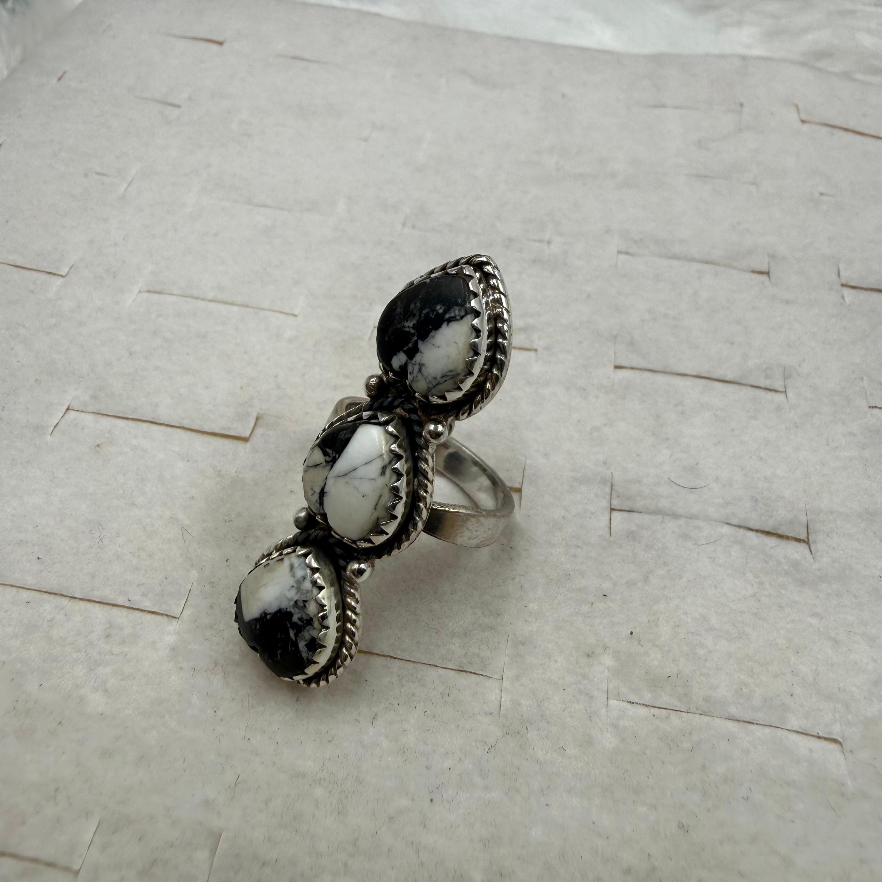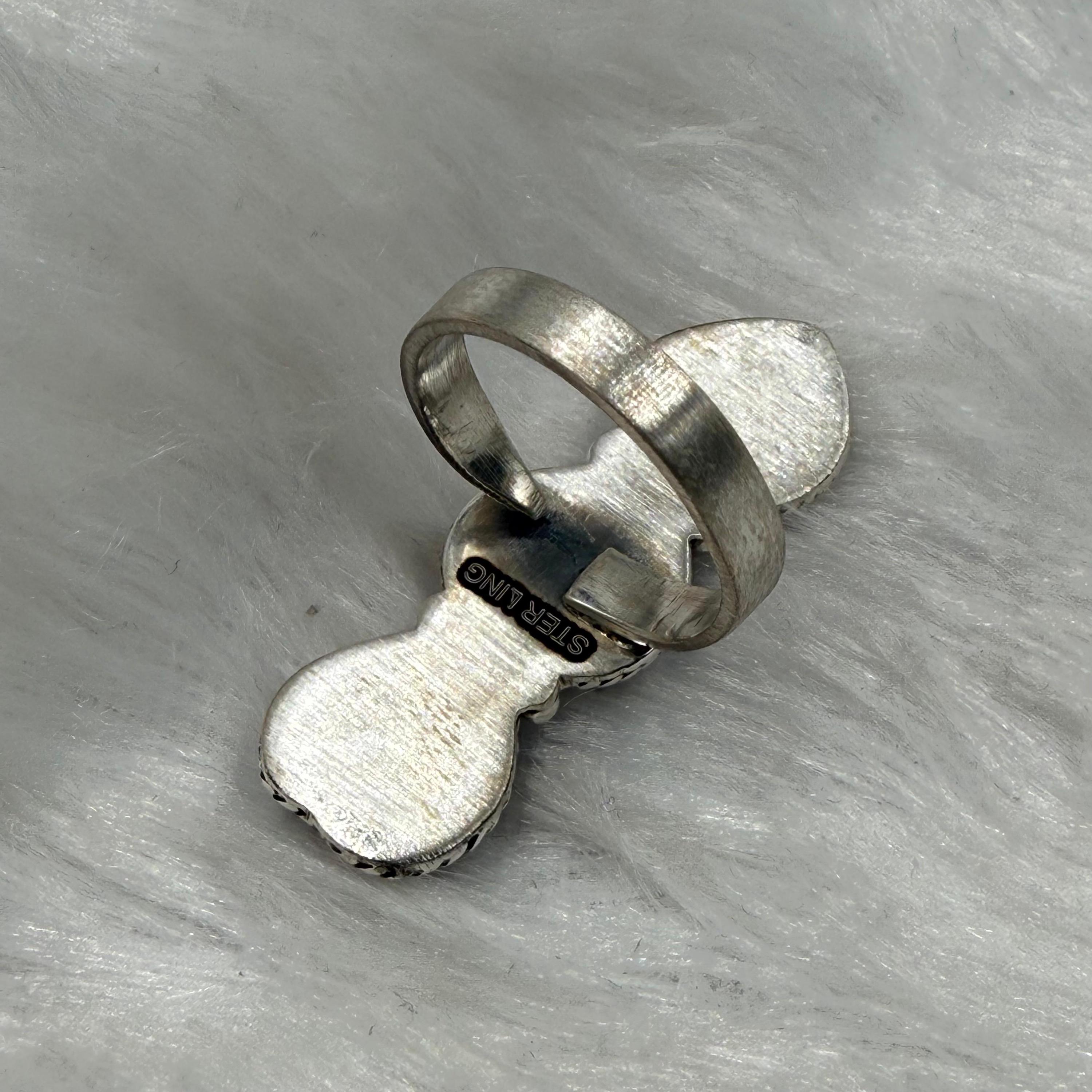 Heart shape White Buffalo turquoise Ring Southwest Handmade Turquoise 92.5 Sterling Silver Ring,Adjuctable ring