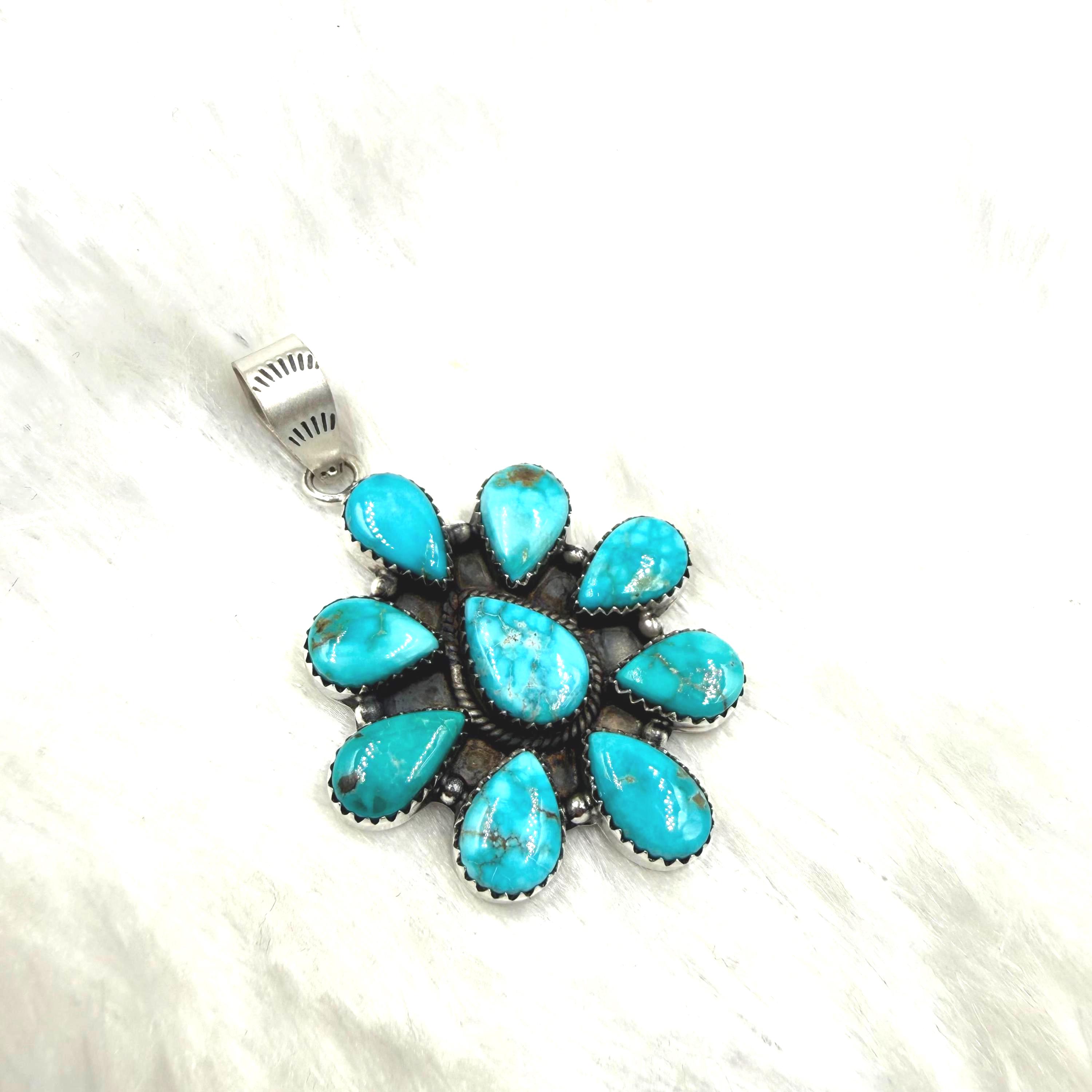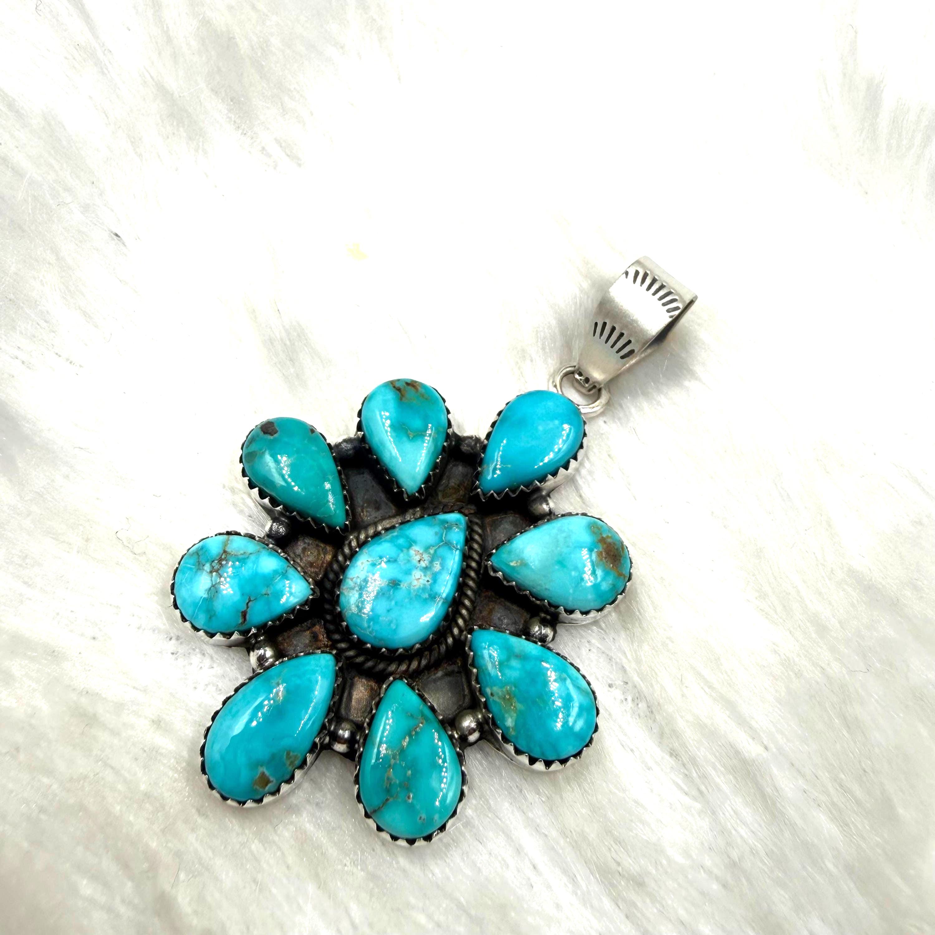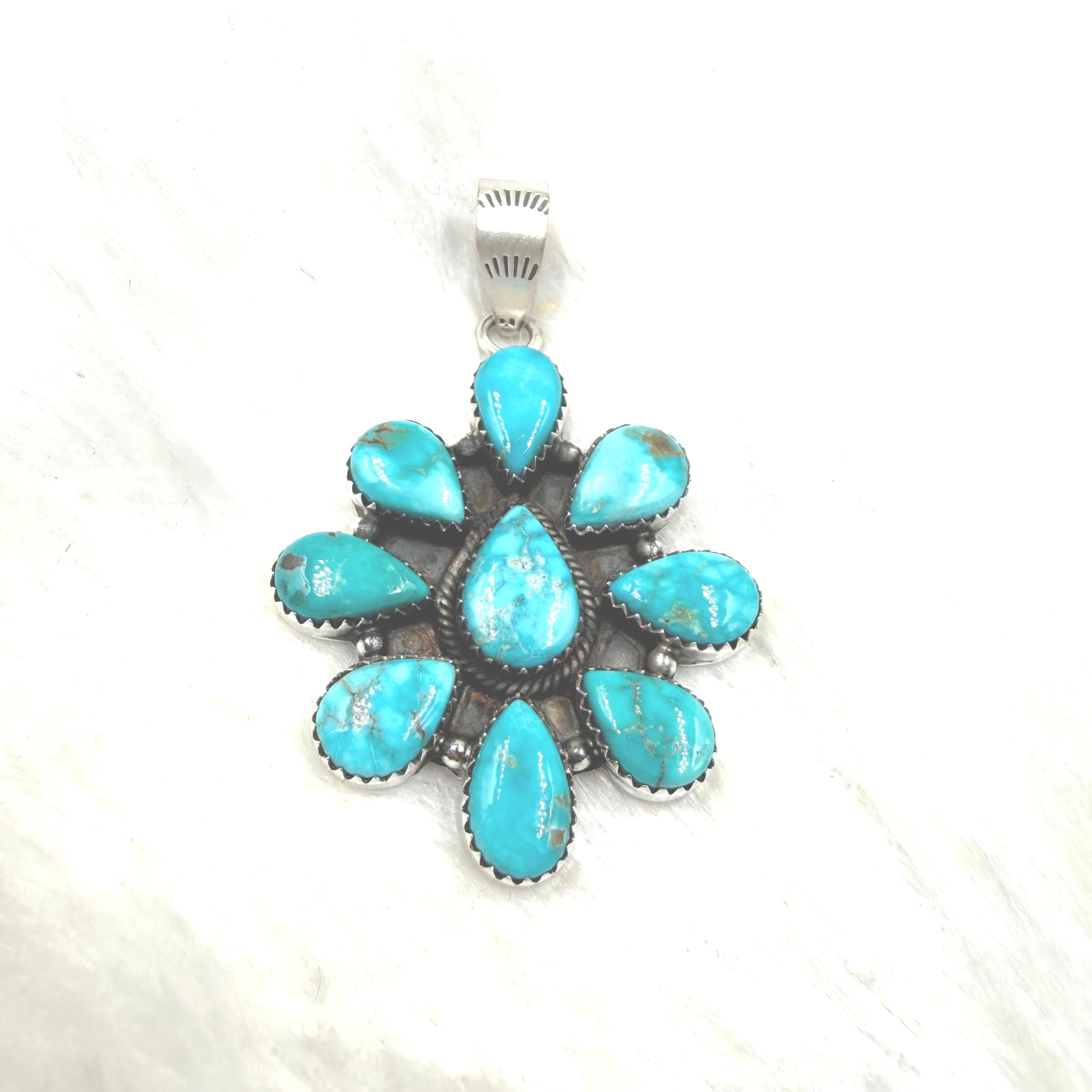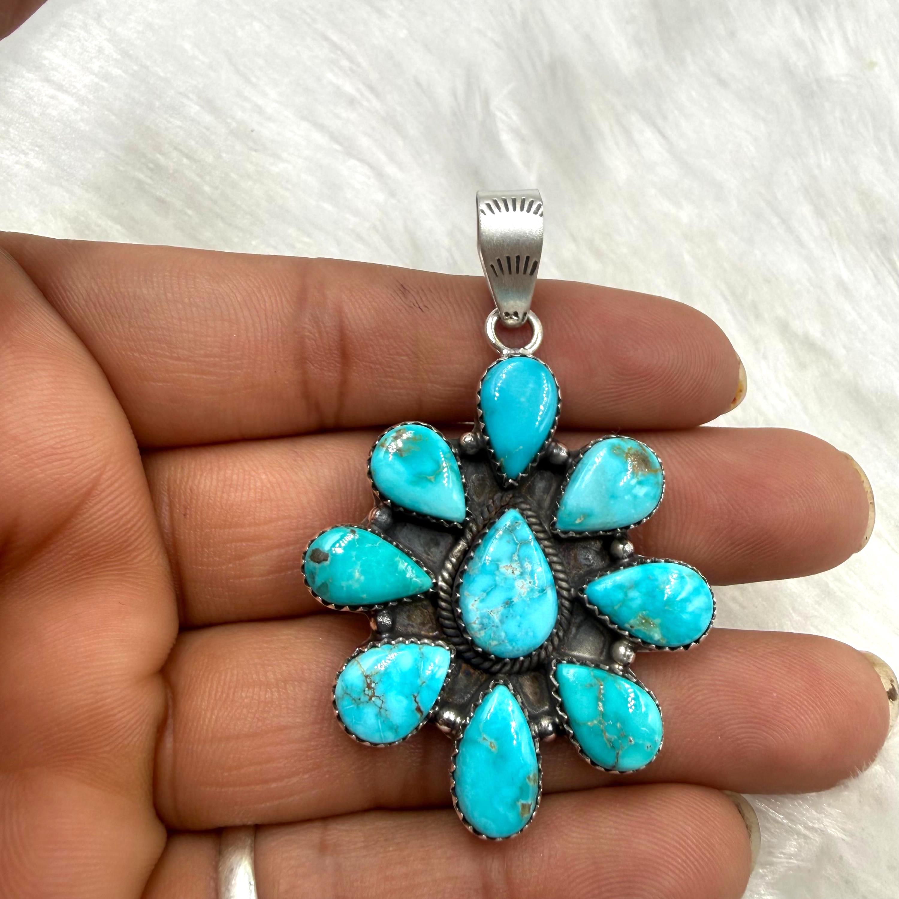 Sierra Blue Turquoise Cluster pendant Sterling Silver Southwest jewllery gift for her,premium turquoise jewlery