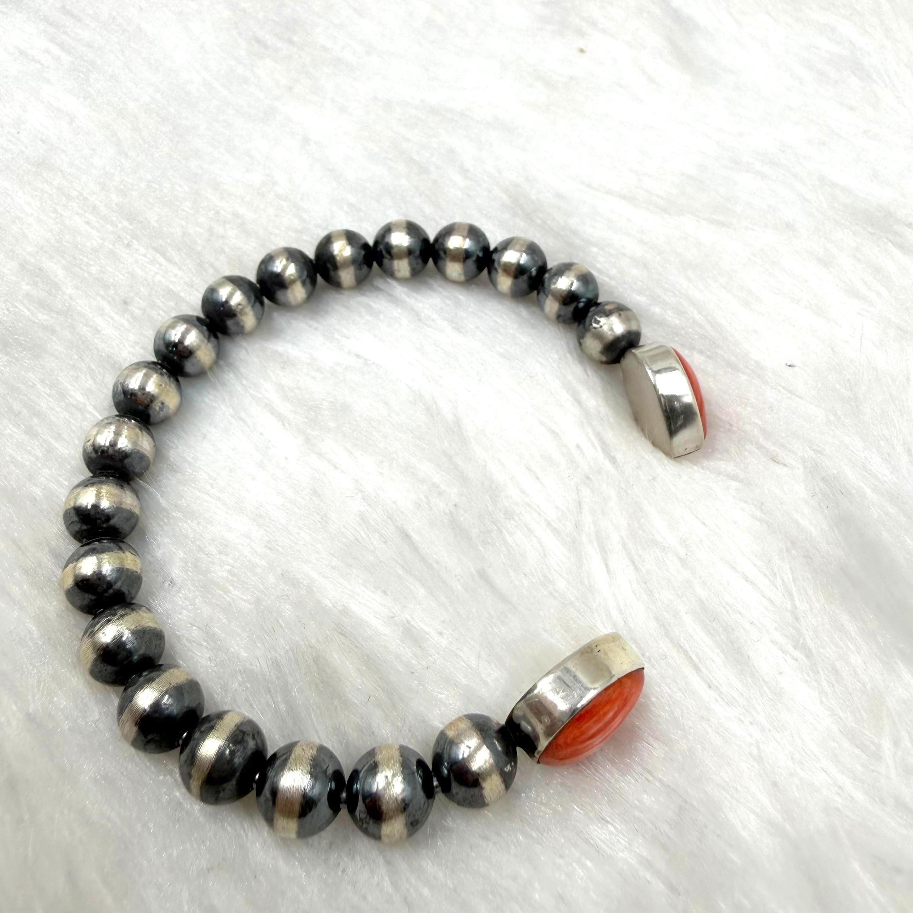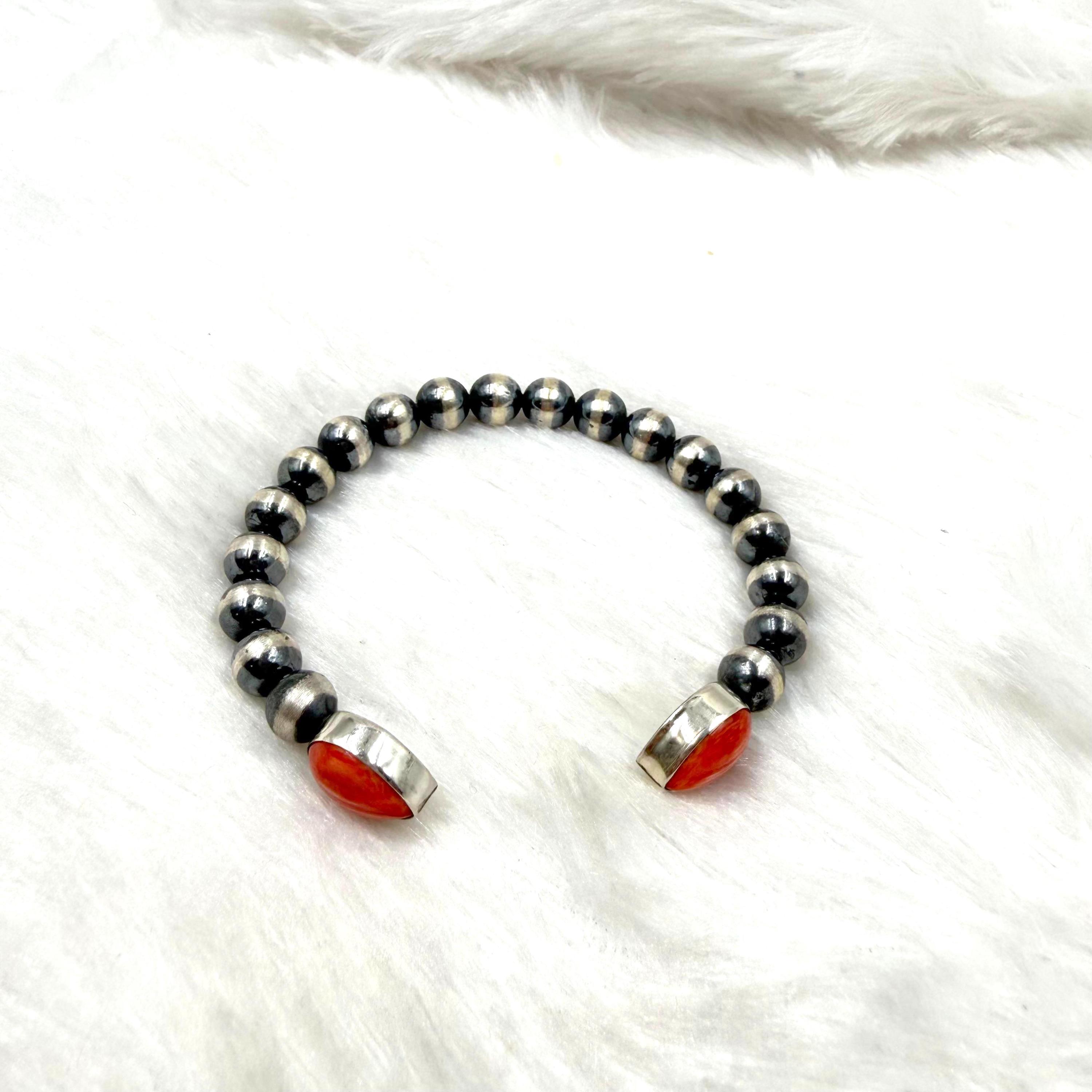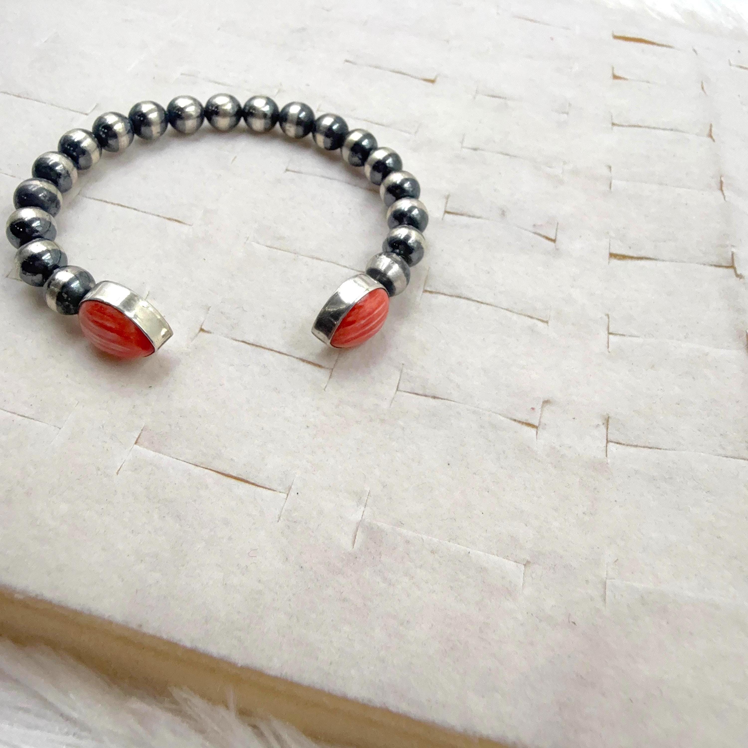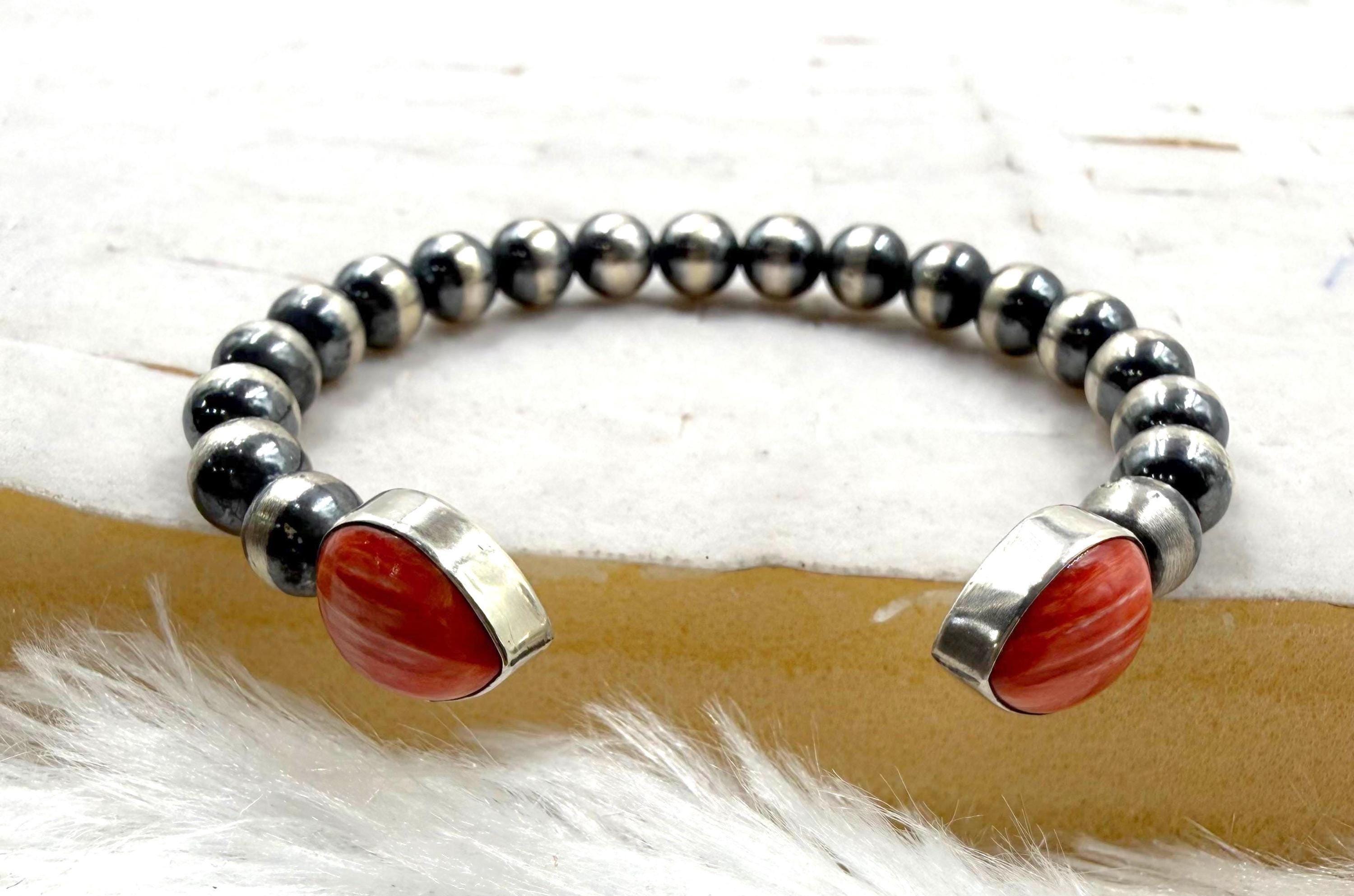 spiny oyster sheel cuff bracelet 5.5+1 inch gap size, sterling silver navajo beads cuff , gift for her/him southwest jewlery